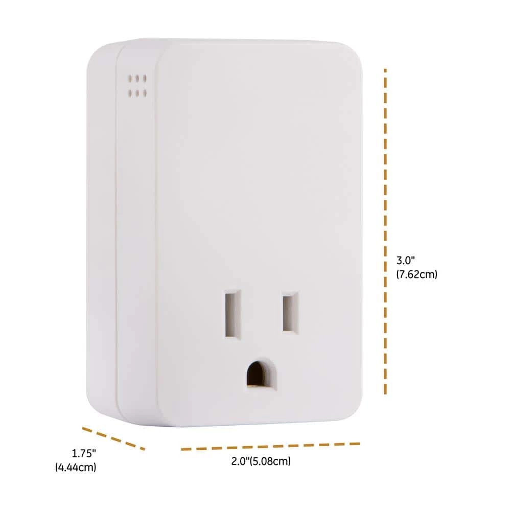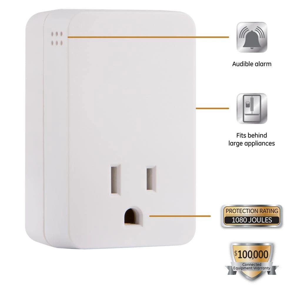 Connect your equipment with confidence when you power up using the GE Audible Alarm Tap. The single outlet wall tap comes with 1080 Joule surge protection, keeping your devices safe in the event of a catastrophic surge. When a surge happens, the extra energy from the voltage spike stays inside the surge protector, keeping your devices out of harms way. However, your surge protectors lifespan is finite and as it ages, it absorbs more Joules and its protective components become weaker. With the Audible Alarm Tap, youll no longer be left wondering when to replace your surge protector. Once its protective capacity has been reached, an 88 decibel alarm will continue to sound until the tap is unplugged from the wall. The wall tap occupies just one plug-in and easily fits behind furniture or in small spaces. Keep the safety of your electronics first with the Audible Alarm Tap.