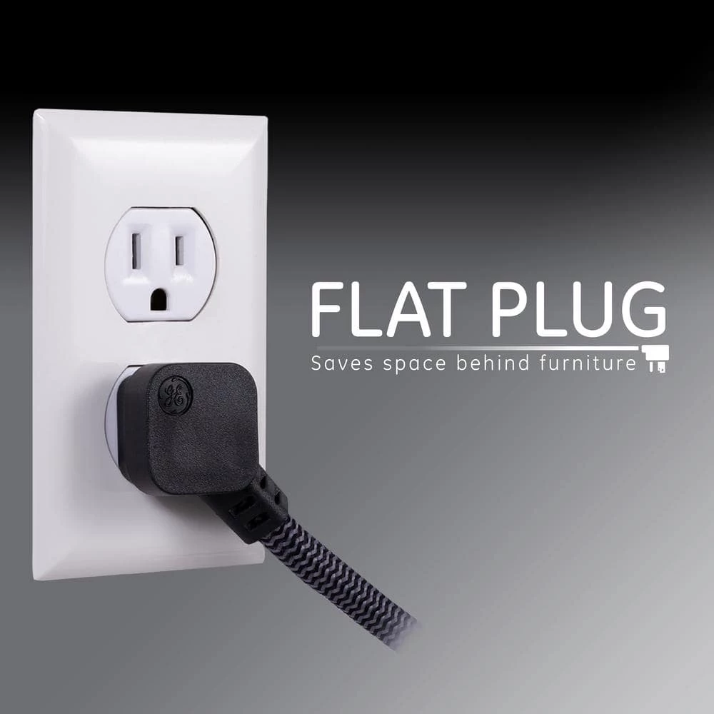 - Flat plug: Save space behind furniture and appliances and keep other-outlets accessible with the slim design of the low-profile, angled, flat plug