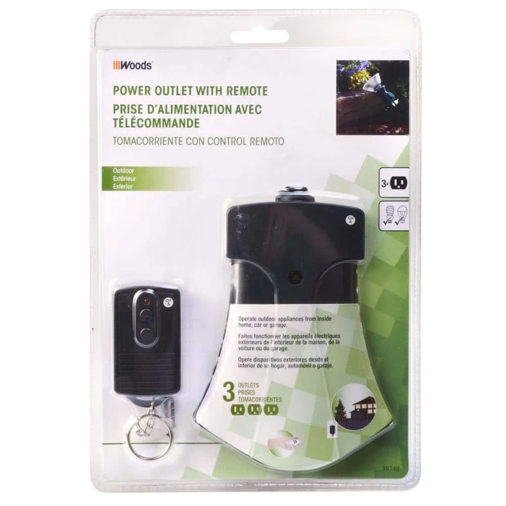 The Outdoor Wireless Remote, 3-Outlet turns up to 3 appliances on or off from up to 60 ft. away. With this timer, you can control your outdoor security lights or holiday decorations from inside the comfort of your home or car. The timer features a durable, weatherproof construction that is rain tight for outdoor applications. The remote unit can be attached to your keychain, carried in a purse or placed in your glove box. Operate patio or security lights or holiday decorations from the comfort of your sofa with the wireless remote and receiver. The Woods brand of timers and home controls bring simplicity to your life, by maximizing convenience, security and energy savings. Coleman Cable, Inc. is a leading manufacturer and innovator of electrical and electronic wire and cable products for the security, sound, telecommunications, electrical construction and retail, commercial, industrial, irrigation, HVAC and automotive markets. Coleman Cable, Inc. offers a family of leading brands such as Designers Edge, Yellow Jacket, Woods and Moonrays.