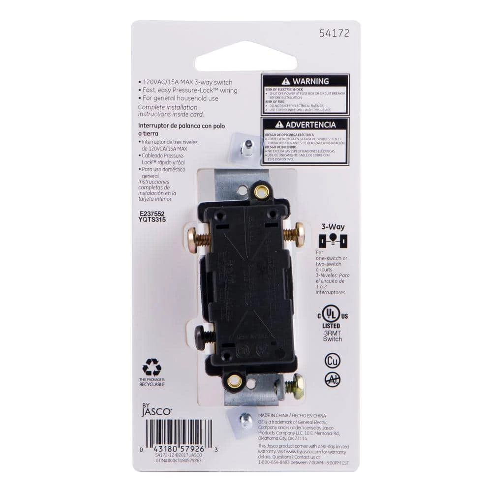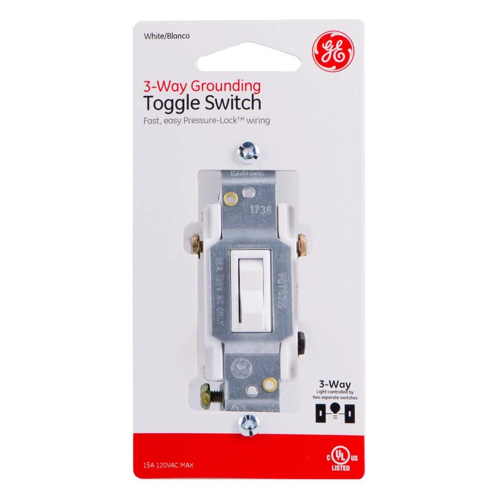 Replace an old or broken switch with a 3-Way Grounding Toggle Switch from GE. Perfect for new or replacement installations, these GE toggle switches feature fast, easy Pressure-Lock wiring and are for use with both one- and two-switch circuits. The switches are easy to install using the complete installation instructions included in the packaging. NOTE: Shut off power at fuse box or circuit breaker before installation. This product is UL listed and is backed by a 90-day limited warranty.