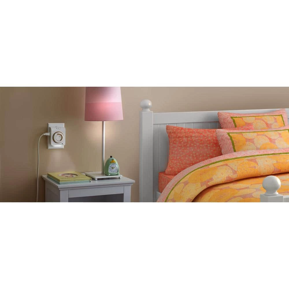 The Mechanical 3-Conductor Timer turns indoor lighting on and off at set times. Programming can be set for multiple ON/OFF events, which maximizes energy savings and controls electricity costs by only using power when it’s needed. This plug-in timer provides up to 24 ON/OFF settings per day and the cycle repeats every 24-hours. Easy to set in 30-minute intervals with never-lose segment pins that can’t be removed or lost. Use the manual override button to turn the timer on or outlet on, so you don’t have to delete any preprogrammed settings. This timer has an instruction slot on the side, which stores the programming manual. Designed with a warm neutral color pallet to compliment today’s home interior. The compact design fits snuggly in your outlet without blocking additional outlets. Ideal for lamps, fans, holiday lighting or other 3-conductor appliances. The Indoor Mechanical 3-Conductor Timer makes it easy; just plug a lamp, fan or other electrical appliance in, set the timer and walk away. This timer is compatible with compact fluorescent lighting, LED bulbs and CSA certified for quality assurance. The Woods brand of timers and home controls bring simplicity to your life, by maximizing convenience, security and energy savings.