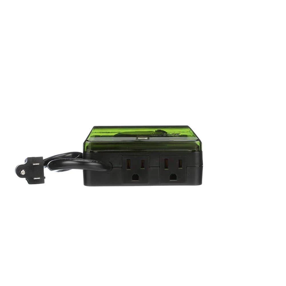- 2-grounded outlets, weatherproof housing, 12 in. power cord