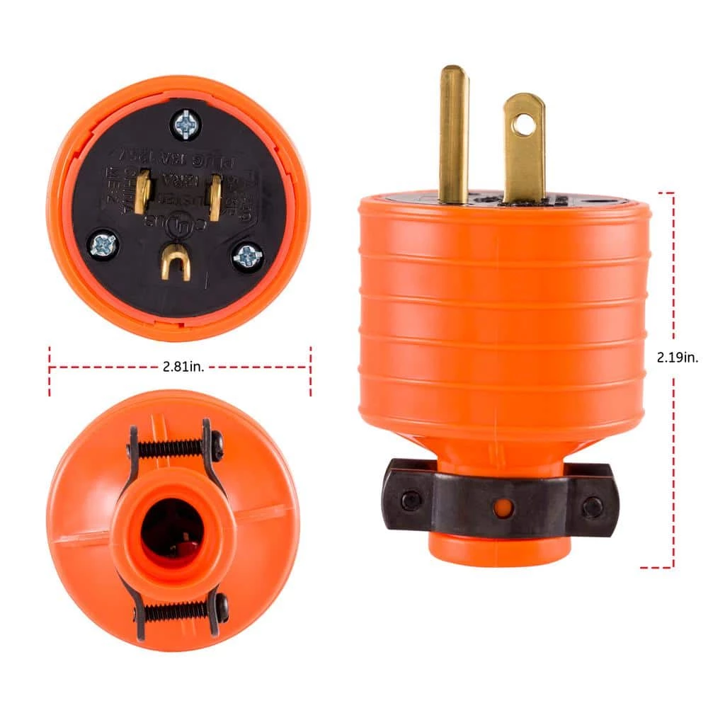 The GE Heavy Duty Grounding Plug is ideal for use with grounded power tools and other appliances. This plug features a metal cord clamp for use with 3-wire cord from #16-3 to #12-3 AWG round type SJE, SJT, SJTW, SJEW, SJEOW, SJTOW. The grounded plug fits grounding (3-slot) outlets and connectors only. For indoor use only. Please note that cord should be disconnected from power source before wiring. Wiring instructions included in packaging. This product is backed by a 90-day limited warranty.