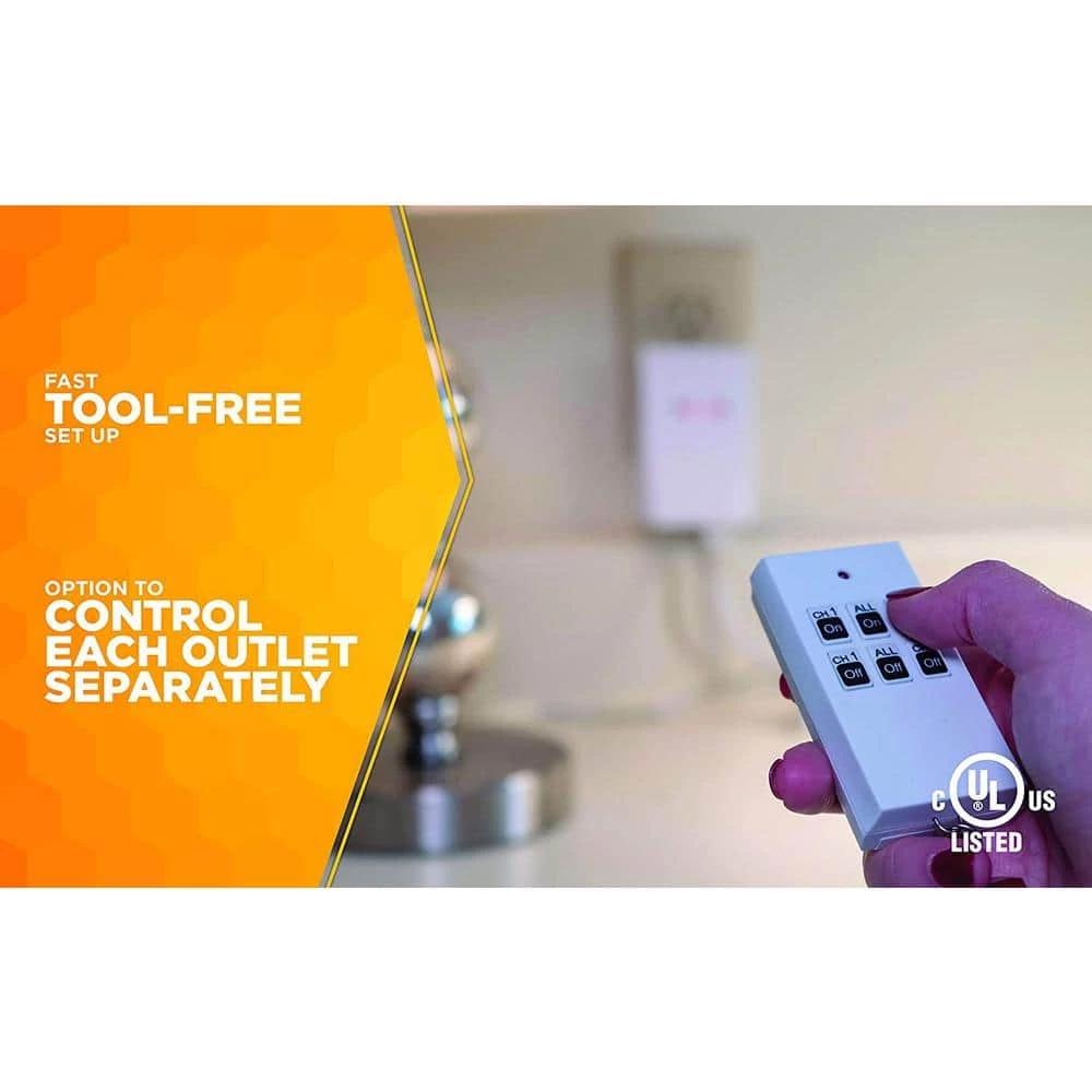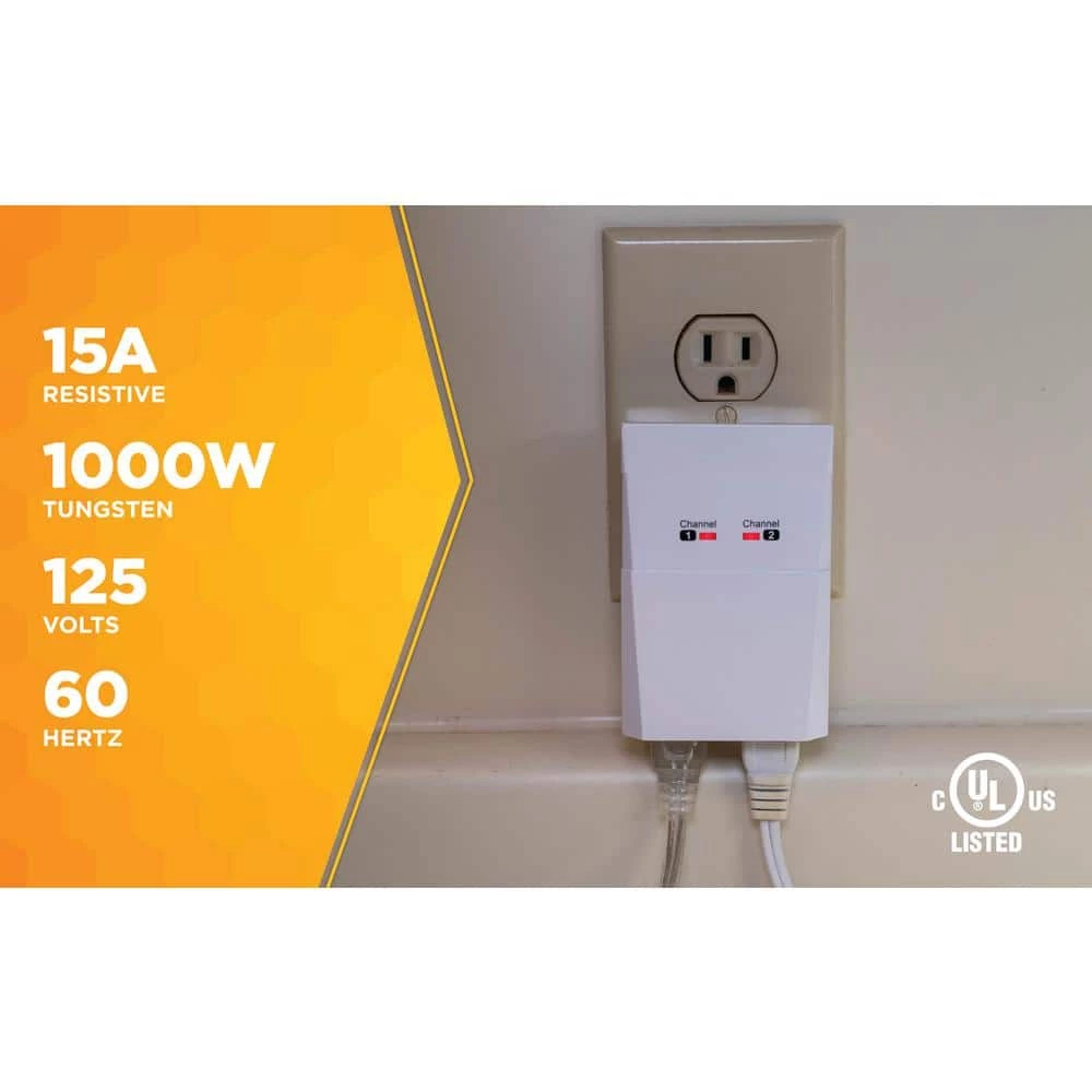 The Woods 59780 Indoor Wireless Remote turns (2) different household appliances on and off from across the room using one remote control. The signal from the remote travels 50-feet through walls, windows or doors. The hand held controller can operate (2) devices at once or each outlet individually. It’s effortless to turn off bedroom lights without getting out of bed or turn off the fan and keep the table lamp on in your living room. Convenient for the mobility-impaired and anyone who just wants a one-touch, easy way to turn lighting or appliances on and off. This package includes (1) receiver with 2-polarized outlets, (1) transmitter and a 12-Volt battery. The unit is compatible with compact fluorescent lighting (CFL) and LED bulbs and is cUL certified for quality assurance. The Woods 59780 Indoor Wireless Remote offers a fast, tool-free set-up and is easy to operate by the simple touch of a button. Use it to turn on lamps, activate holiday displays, operate electric fans and so much more. Perfect for hard to reach lamps and holiday decorations. The Woods brand of timers and home controls bring simplicity to your life by maximizing convenience, security and energy savings.