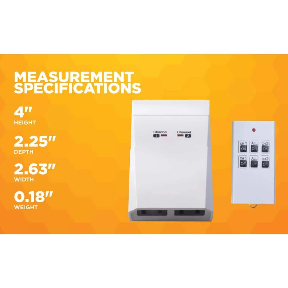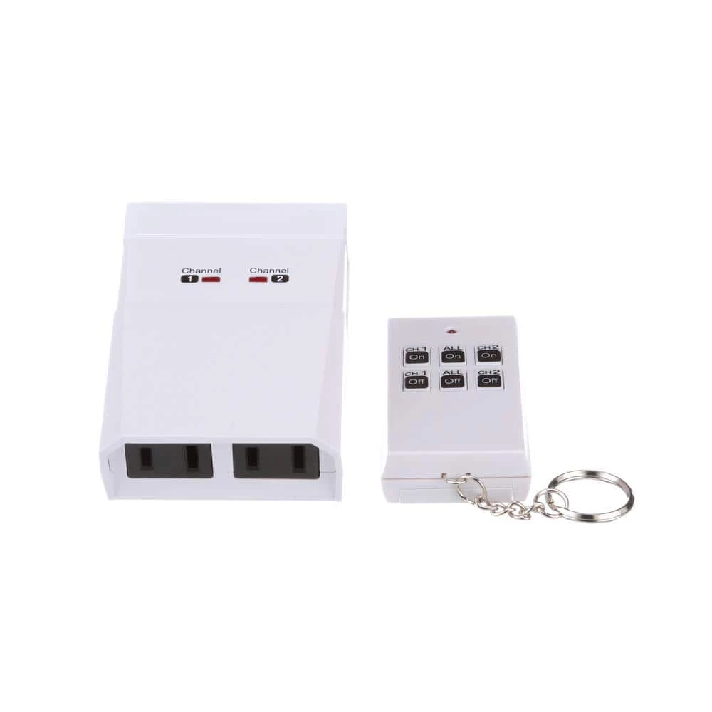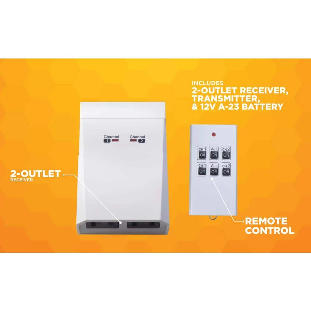 - Includes a 2-outlet receiver, transmitter and 12-Volt A-23 battery