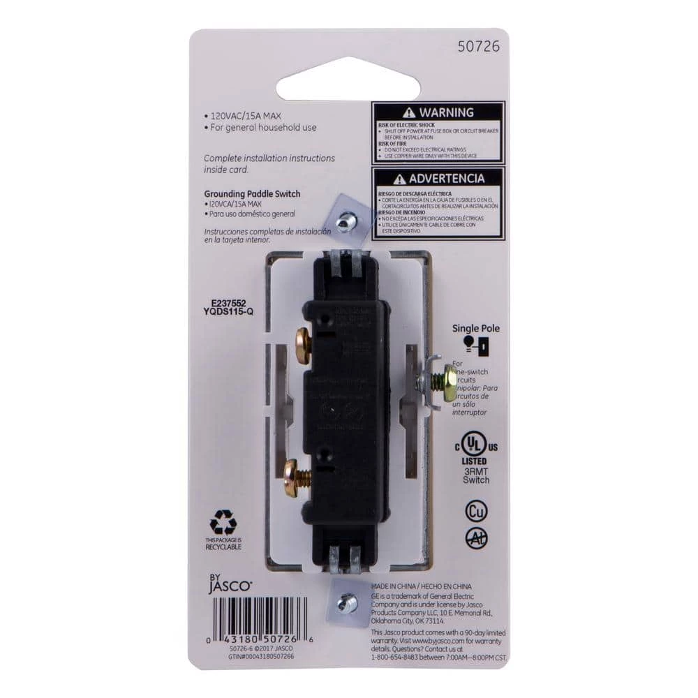 Update your home’s switches to today’s style with a Designer Switch from GE. Perfect for new or replacement installations, these GE Designer switches feature fast, easy Pressure-Lock wiring and are for use in one-switch circuits only. The Pressure-Lock terminals are for use on 15 Amp branch circuits with No. 14 AWG solid copper conductors only. Screw terminals are for use with No. 12 or 14 AWG copper wire. The switches are easy to install using the complete installation instructions included in the packaging. NOTE: Shut off power at fuse box or circuit breaker before installation. This product is UL listed and is backed by a 90-day limited warranty.