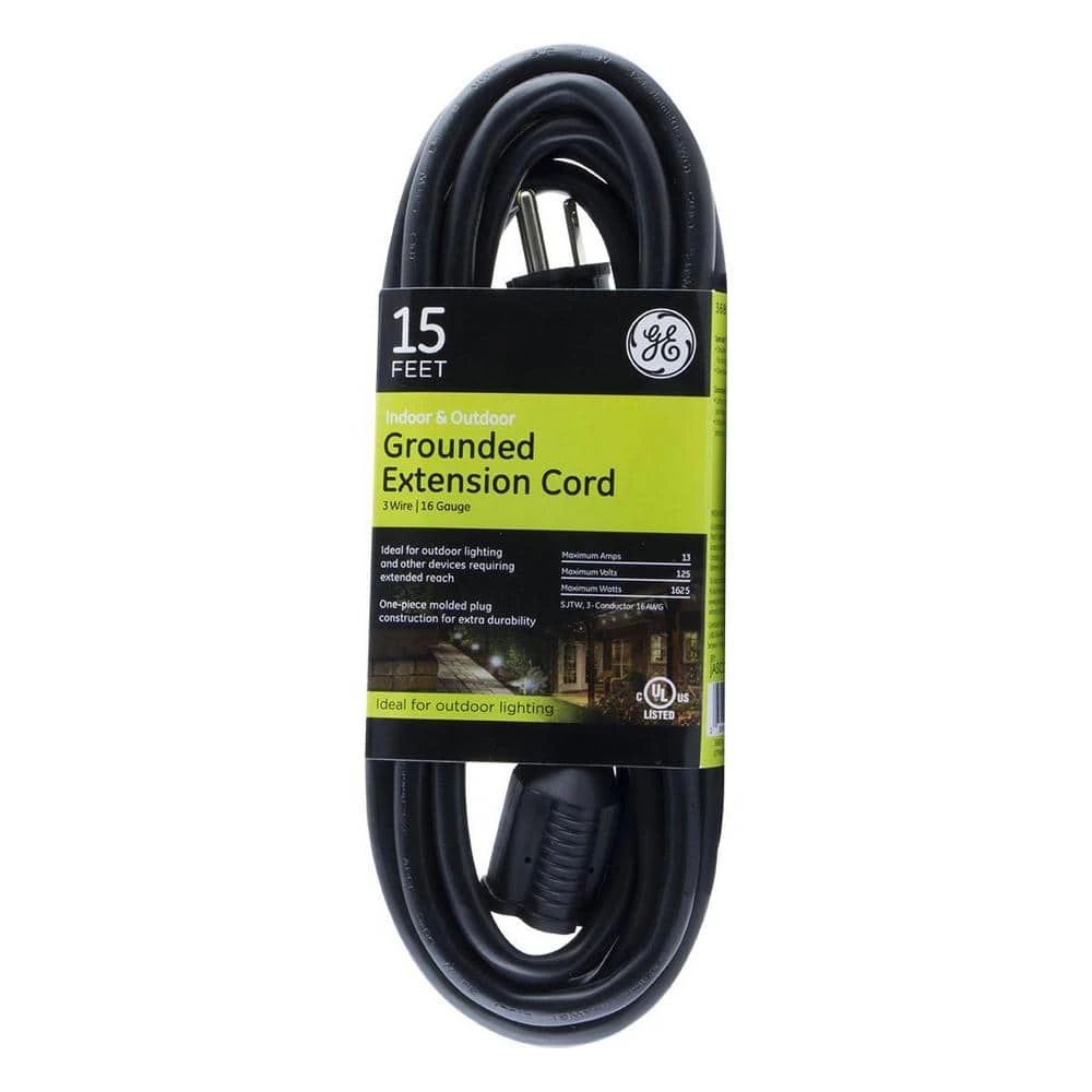 Illuminate your backyard with the GE Outdoor Extension Cord. These cords are perfect for outdoor lighting, while also serving other purposes such as landscaping, power tools, appliances and other outdoor needs. The one-piece molded plug and double insulated cord provide extra durability, making sure your cord withstands the test of time and outdoor conditions.
