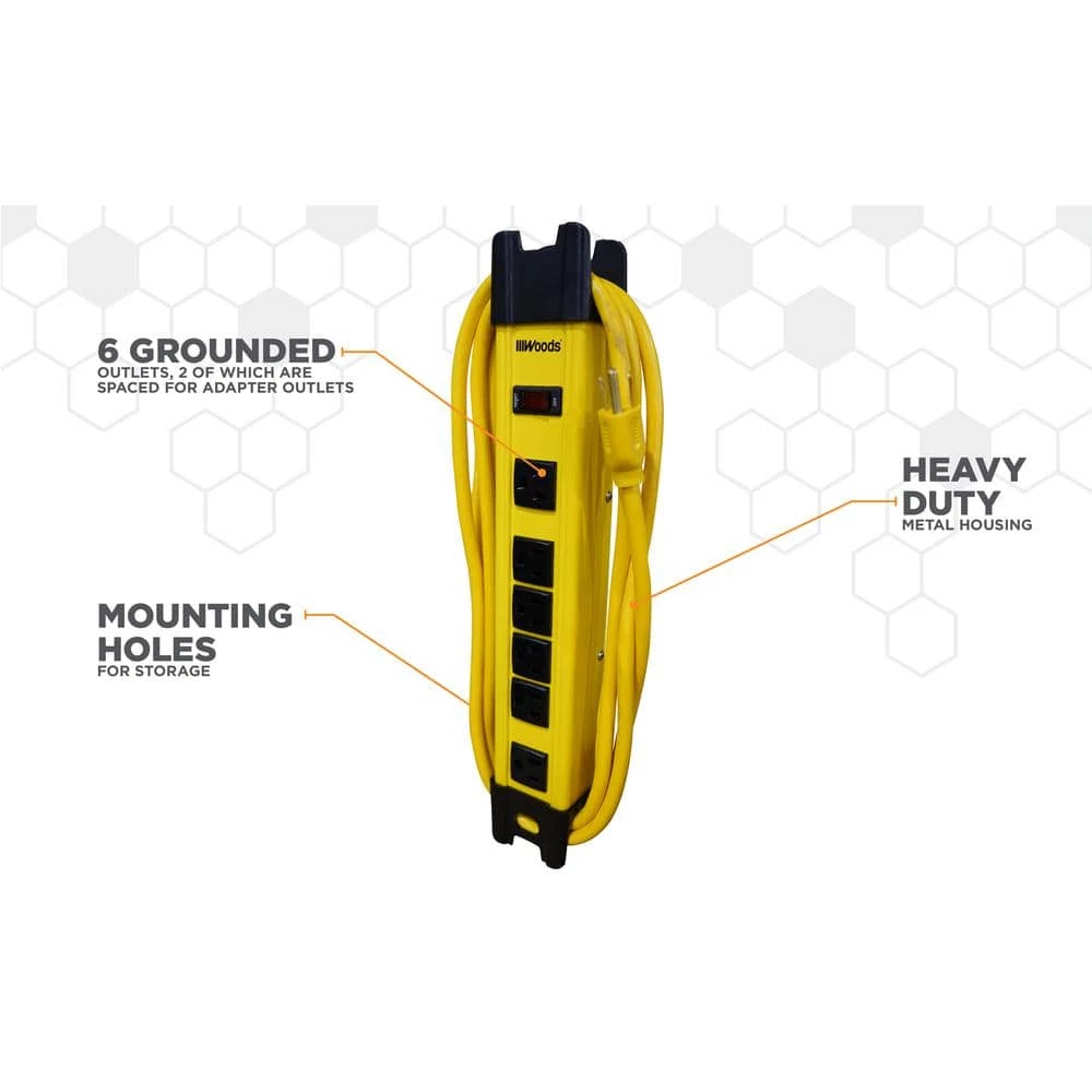 - Features (6) grounded outlets and a 15 ft. extra long power cord