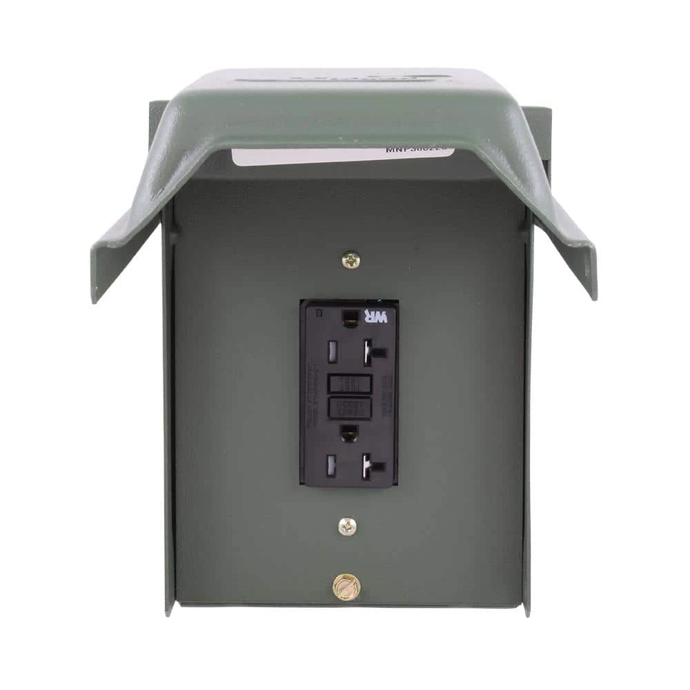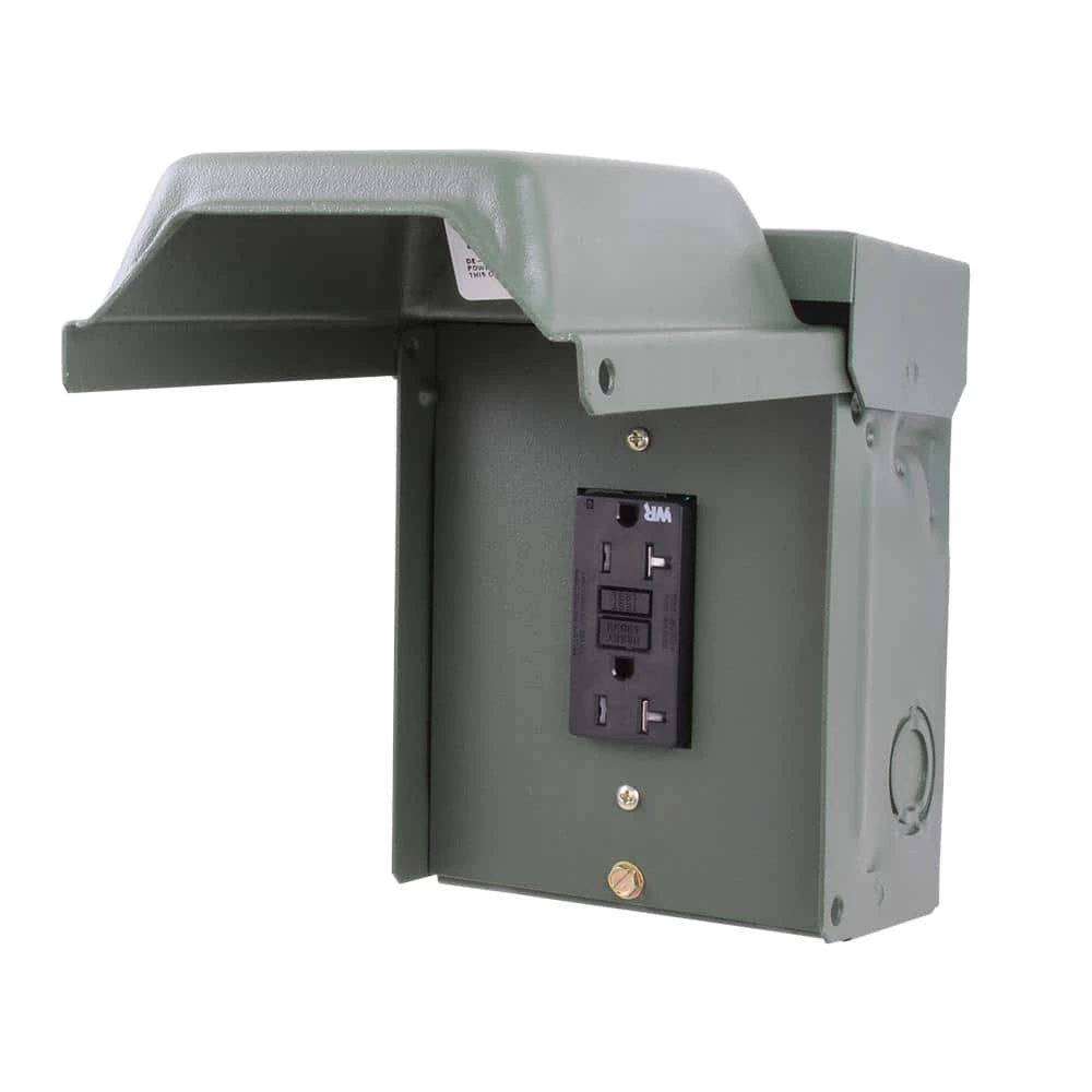 This GE 20 Amp Backyard Outlet with GFI Receptacle allows you to put power where you need it. Made of weather-resistant galvanized steel, this 20 Amp outdoor outlet offers a compact design. Most importantly it comes pre-assembled to reduce installation time saving you money.