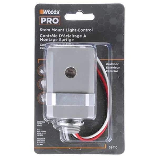 The Woods 59410 Directional Dusk to Dawn Photo Control conserves energy by turning lights on at dusk and off at dawn. This stem mount light control is designed for residential or commercial applications and is rated to a maximum of 2000-Watt. Ideal for controlling security lighting, building perimeters, sports fields, parking lots, outdoor sign illumination and other outdoor uses. It’s compatible with incandescent, fluorescent, CFL, LED, halogen, mercury vapor, high pressure sodium or metal halide fixtures. This light control has a 1/2 in. IPS thread or mounts in 1/2 in. knock-out holes. It requires no seasonal adjustments, the photo control activates with the absence of light and features a time delay which eliminates flicker and false ON/OFF triggers due to stray car lights. The Woods brand of timers and home controls bring simplicity to your life, by maximizing convenience, security and energy savings.