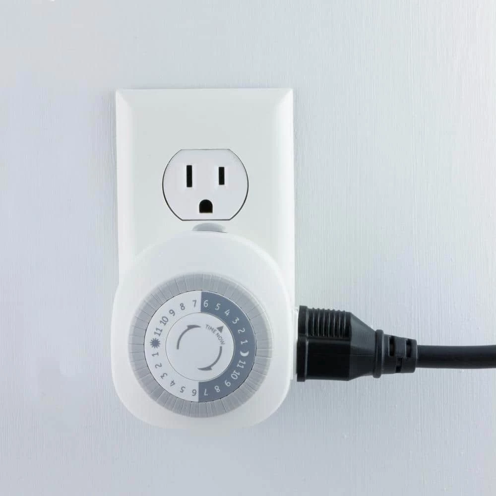 - Indoor Timer – The plug-in mechanical timer is intended for indoor use only and is CFL bulb compatible