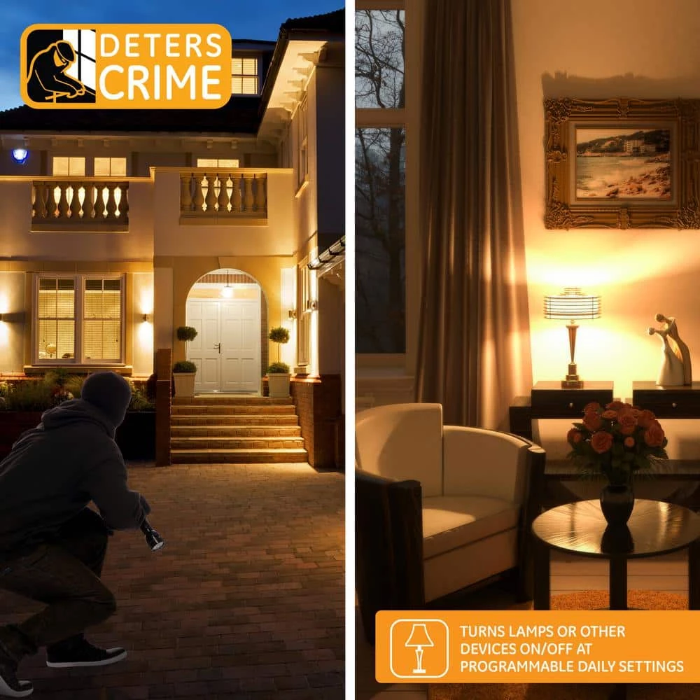 - Light Timer – Ideal for your security lights, landscape, patio and seasonal lighting. LED, CFL, Incandescent and Halogen compatible