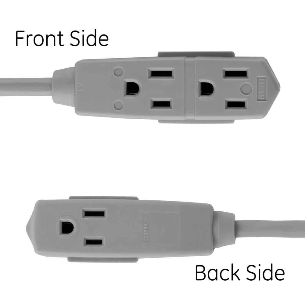 Safely increase the plug-in potential of hard-to-reach outlets with the GE-branded 3-Outlet Extension Cord. This premium extension cord includes three grounded outlets, transforming your regular three-prong receptacle into a safe, organized powering station. Create a permanent place in your home office, entertainment center or workspace to keep all of your electronic equipment accessible. The dynamic 25 ft. range of this outlet extender makes it a must-have when you need power from a distance. The extension cords extra-long, durable power cord is connected to a space-saving flat plug, allowing the cord to plug in easily behind desks, sofas and other furniture. Additionally, the angled plug allows for this surge protector to be plugged into the receptacle without blocking the other outlet. This unit is UL listed and backed by a limited-lifetime replacement plan for peace of mind your extension cord is backed by the highest standards of safety and performance. Get the most from your outlet with a GE-branded 3-Outlet Extension Cord.