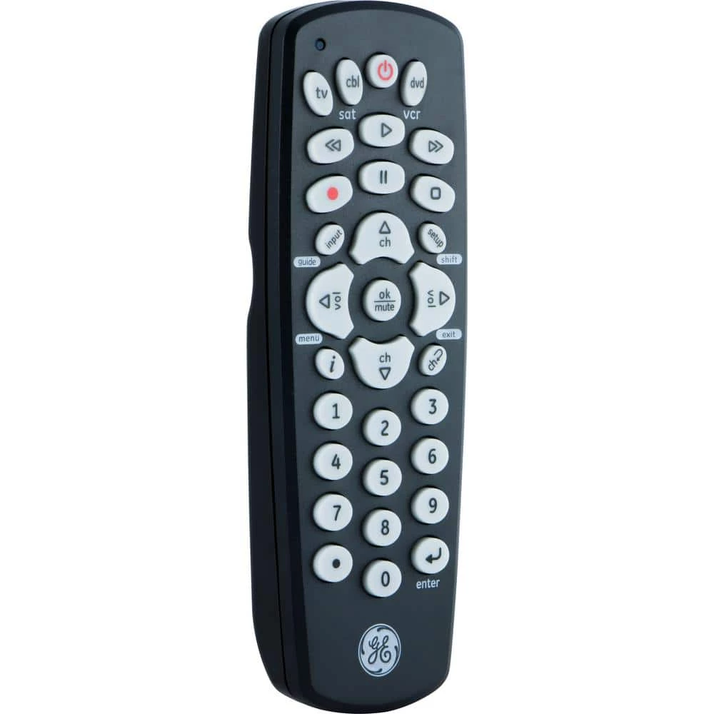 Consolidate control with a GE 3-Device Universal Remote. No longer worry about keeping track of multiple controllers – this universal remote is designed to control up to three devices, including your TV, Blu-ray/DVD player, DVR, streaming media player, cable, satellite, sound bar and more. Eliminate the hassle of programming more than one controller and enjoy having full control at your fingertips. Enhance and simplify your home entertainment system by customizing the remote’s capabilities to give you the best experience possible. Preprogrammed for immediate use with Samsung TVs, this remote offers simple, user friendly setup with your choice of auto code search or direct code entry programming. The master volume control feature allows you to adjust the audio regardless of which device is being used. And, for added convenience, this remote offers simple menu navigation and a dot button for direct sub-channel access. Streamline your home entertainment system with the GE 3-Device Universal Remote.