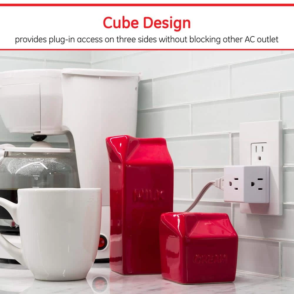 Transform your outlet anywhere with the GE 3 Outlet Plug Adapter. Expand a standard grounded outlet into three with the wall tap cube that has a 3-prong outlet on 3 sides of the block. This allows space for bulky plugs and standard plugs to use this outlet adapter at the same time. Take it with you to work or school to satisfy your power needs on the go. This outlet adapter is UL Listed and has an electrical rating of 15A, 125VAC and 1875W. The GE 3 Outlet Plug Adapter is for indoor use only.