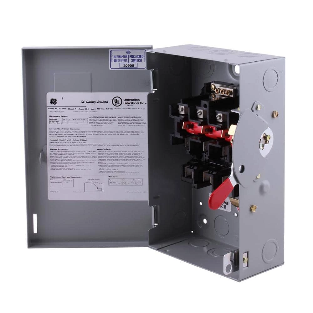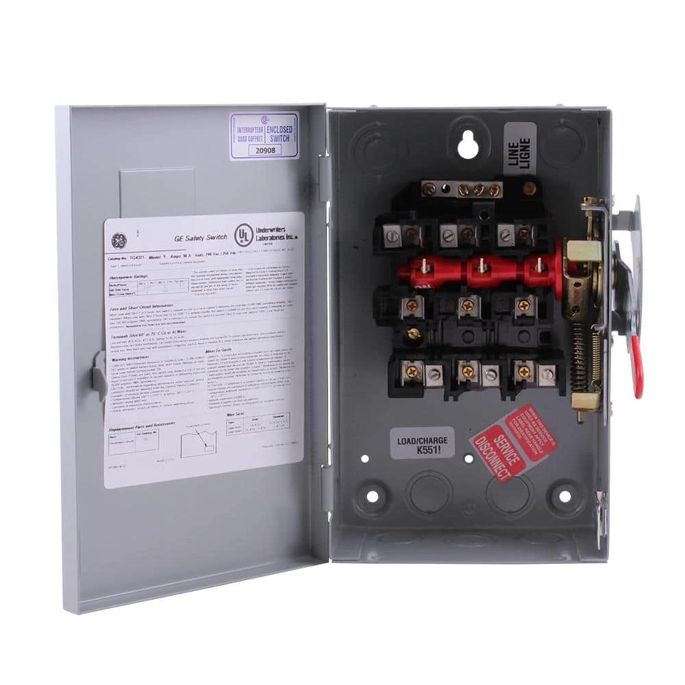 This GE 30 Amp 240-Volt Fusible Indoor general-Duty Safety Switch is designed for residential and light commercial applications. This safety switch features a highly visible on/off label for safety and a bright red handle for easy recognition and gripping. With a wide, unobstructed gutter and removable interior, this safety switch allows for quick and easy wire pulling and lug connections.