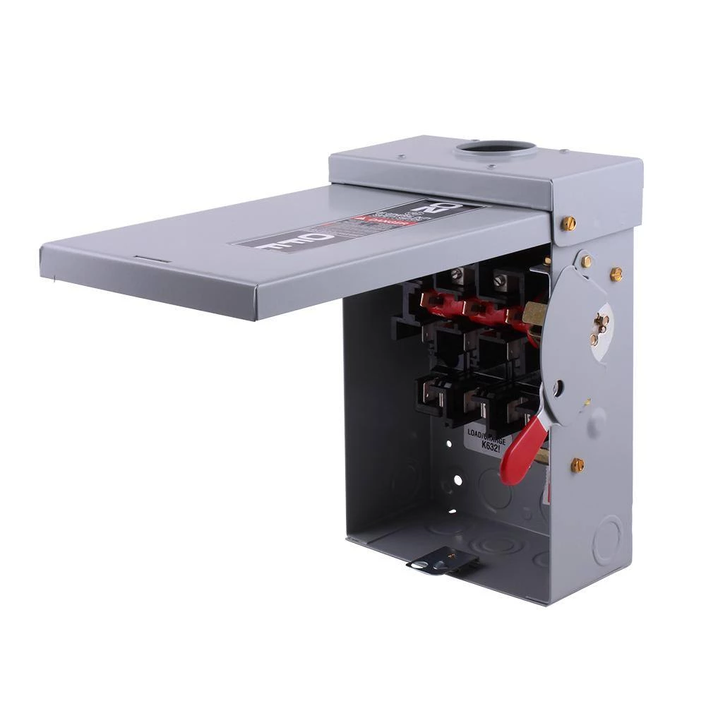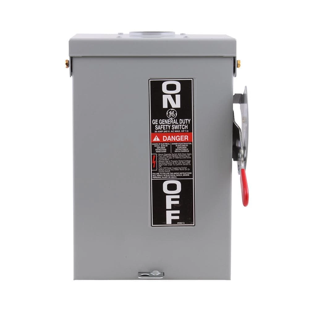 This GE 30 Amp 240-Volt Fusible Outdoor General-Duty Safety Switch provides a type-3R galvanized steel enclosure that offers superior rust protection ideal for outdoor installation. This safety switch features plated stationary and movable contacts and plated blades for visible confirmation of contact position. CSA listed and ANSI certified.