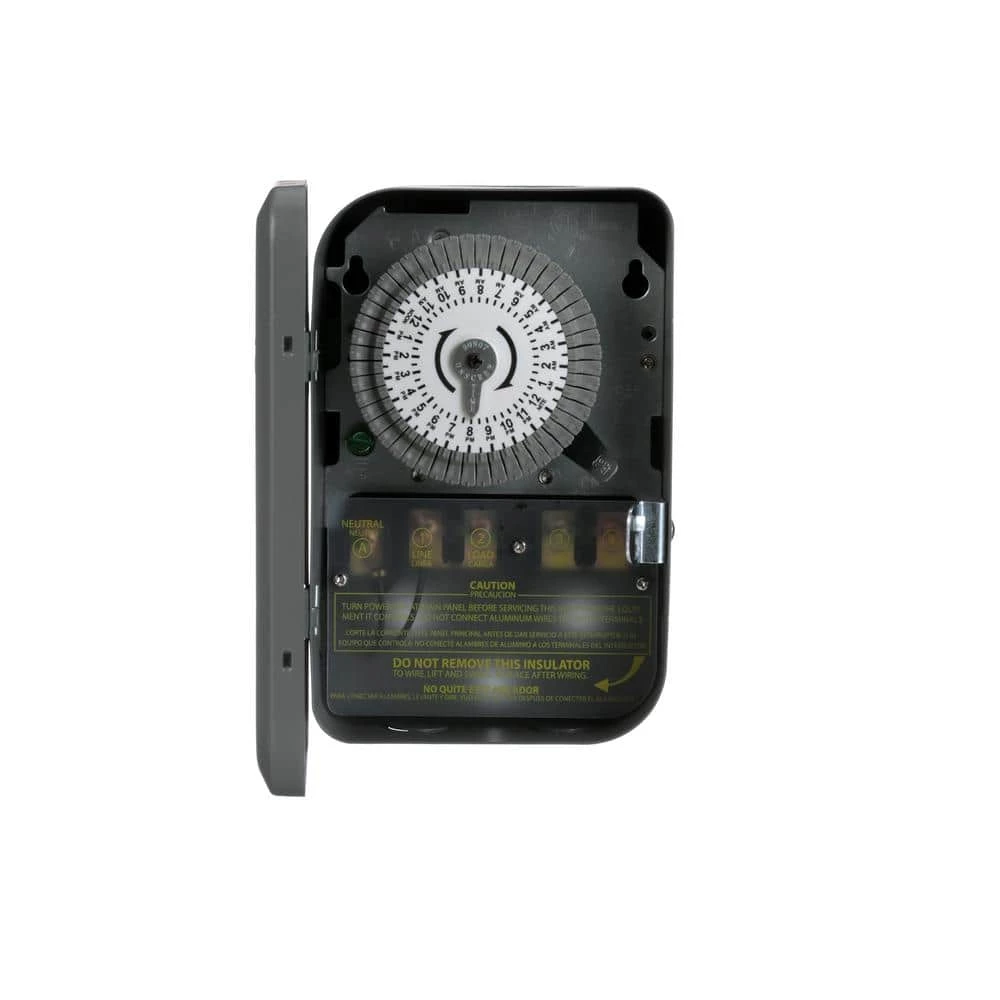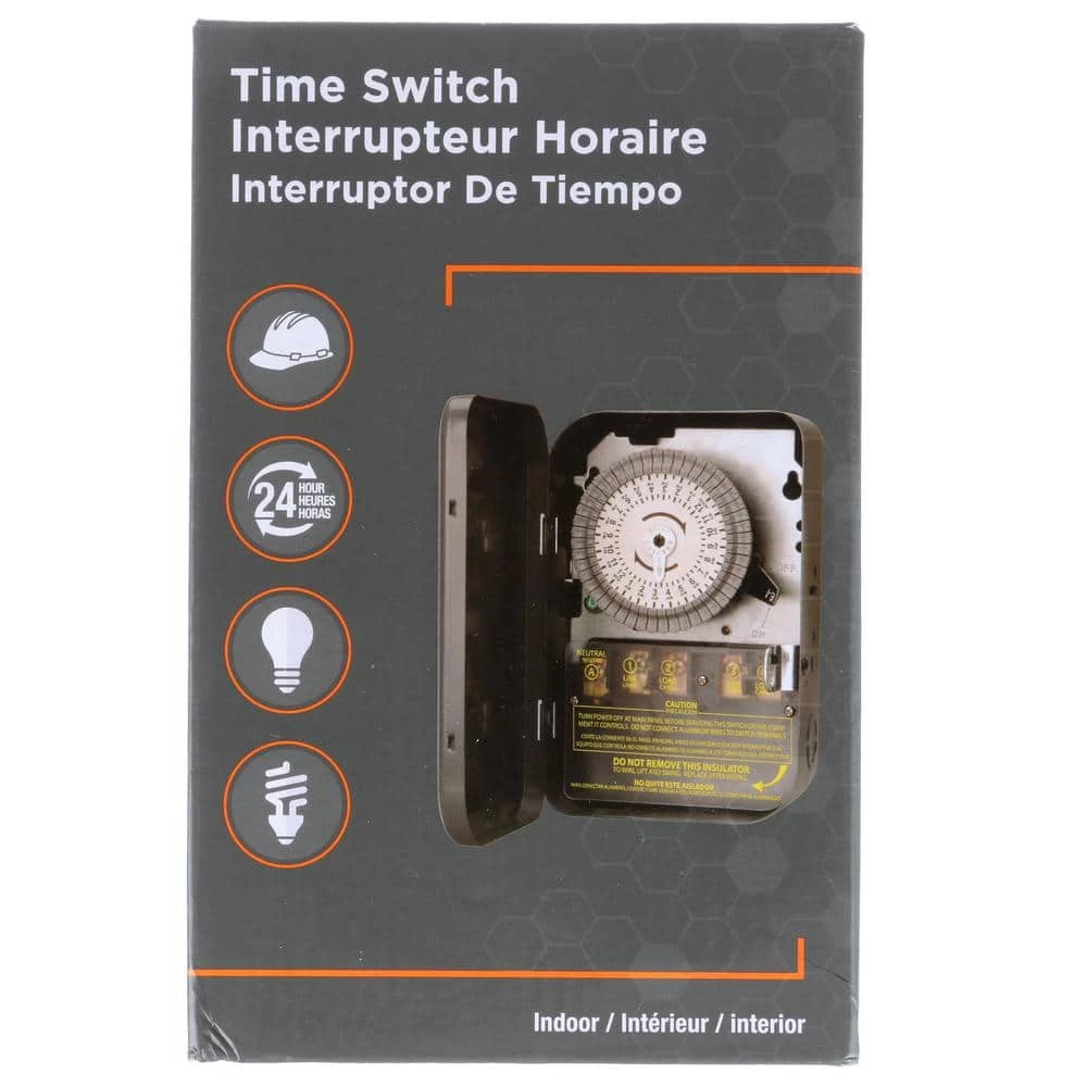 The 208-277 Volt, DPST, 40 Amp, 24 Hour Mechanical Time Switch, turns heavy-duty appliances on and off at set times. Set multiple on/off settings and features a 40 Amp contact switch with robust motor and heavy-duty gear train that is enclosed in an industrial grade lockable steel box for safety and durability. Has up flexible programming, with segment pins that are permanently attached so they won’t get lost. Programming can be set for multiple on/off events, which maximizes energy savings and controls electricity costs by only using power when it’s needed. Also includes a manual override lever which temporarily suspends switch operation without affecting the set schedule. The Double Pole, Single Throw (DPST) indicates the mechanical timer can control two circuits (like two sets of lights, or a set of lights and a sign). The 208-277 Volt, DPST, 40 Amp, 24 Hour Mechanical Time Switch is CSA Certified for quality assurance and meets UL standard 917. Rated for most loads up to 5-horsepower (28FLA), 40 Amp resistive, general use, and tungsten from 208 to 277-Volt providing direct 24 hour time switch control. The Woods brand of timers and home controls bring simplicity to your life, by maximizing convenience, security and energy savings.