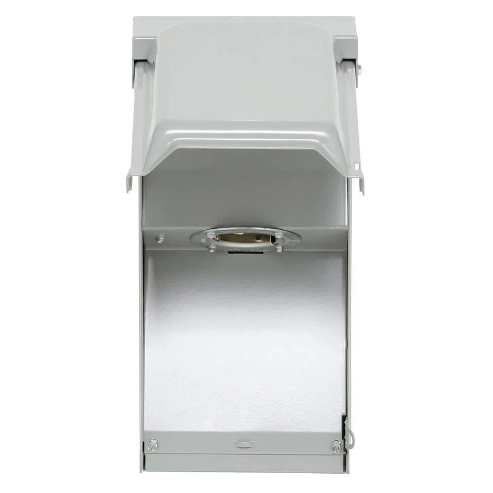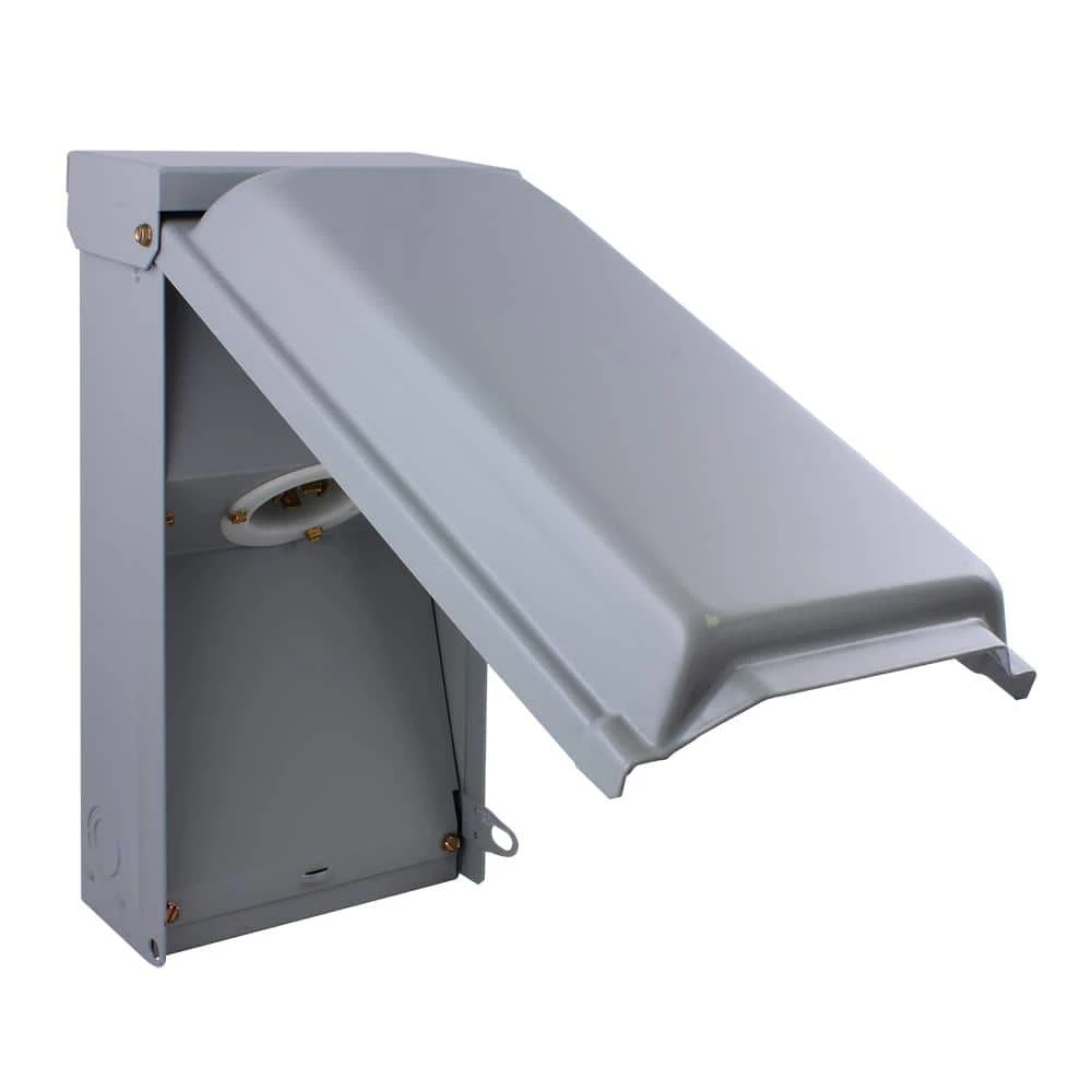 The GE 50 Amp Power Inlet (L14-50 Twist Lock) features a single enclosure that protects against weather and normal field use. The galvanized steel construction and electro-deposition paint finish prevent corrosion. Designed for use with a generator panel, a load center with an interlock kit, or a manual transfer switch for stand-by power.