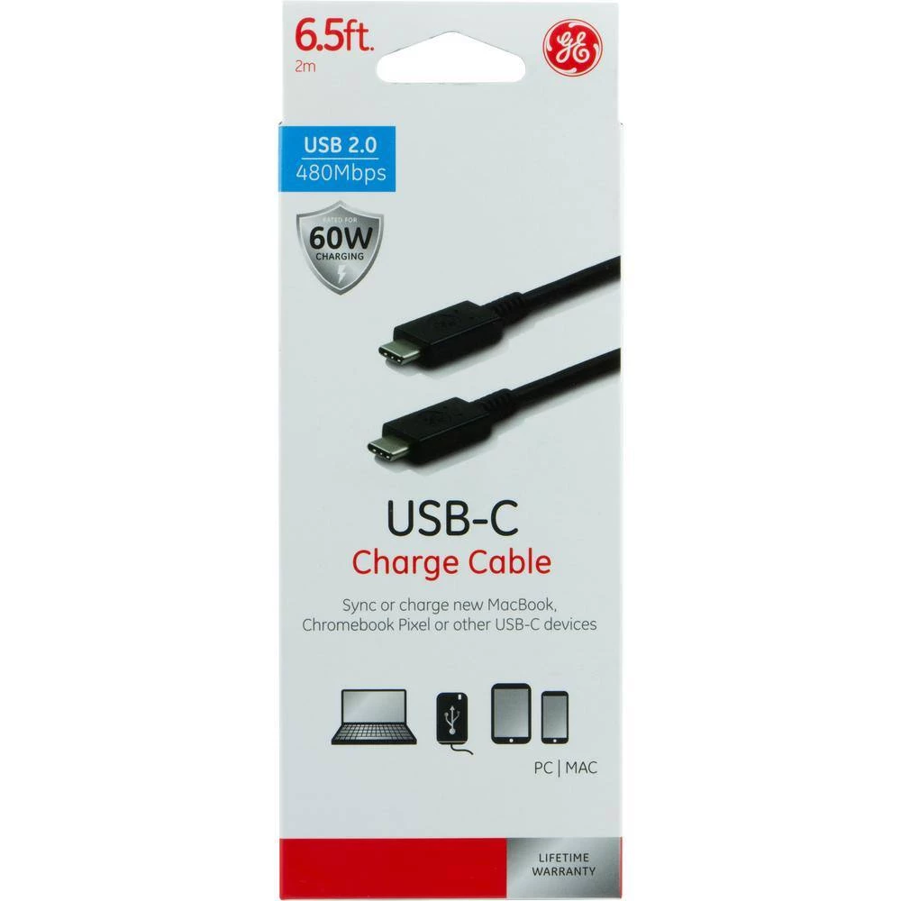 Experience the all-for-one connectivity solution with the GE branded USB-C Charging Cable. Use this cord to sync or your charge the latest USB-C equipped devices, including the new MacBook and Chromebook Pixel. The USB C plug is quickly becoming the industry standard for charging and powering all of your smart electronics. Its universal, future proof design is compatible with accessories both large and small, including laptops, tablets, smartphones and hard drives. The USB-C connector is reversible, with no up or down orientation, attaching easily to its desired port on the first try. Conveniently bi-directional, the USB-C cable can quickly send or receive power at a rapid rate of 480 Megabits per second. Backward compatibility makes the cable accessible to older USB models (with the use of an adapter). The cable comes in black with a generous cord length of 6.5 ft. offering versatile setup options for your home or office space. Experience the future of charging with the GE branded USB-C Charging Cable.