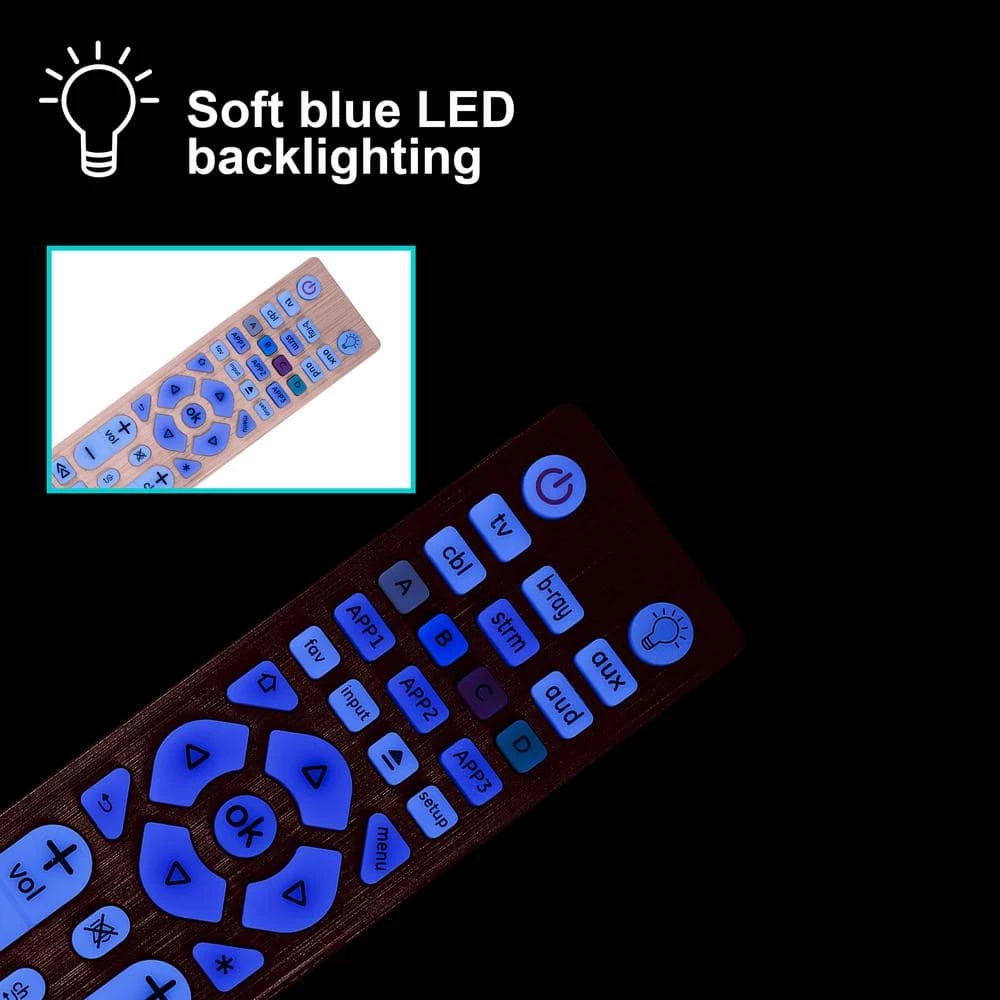 - Multi-device control – operate up to 6 different audio and video devices such as TVs, Blu-ray/DVD players, cable/satellite receivers, sound bars and more