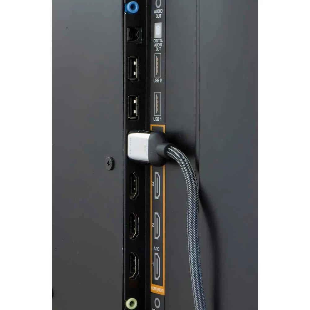 - Gold-plated connectors – allow crystal-clear transfer of video and audio and are housed in a metallized finish, additionally, the braided cable provides maximum shielding, blocking electromagnetic interference (EMI) for superior picture quality