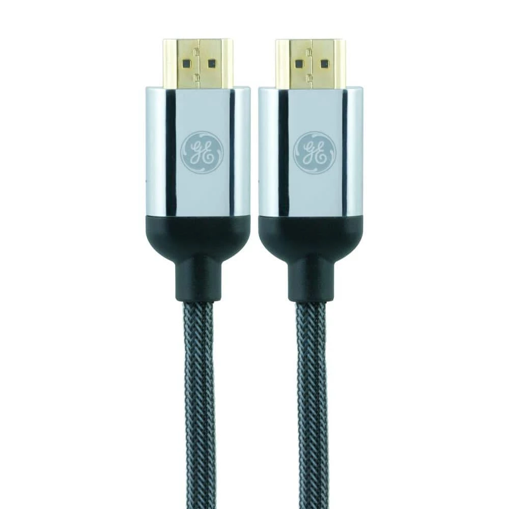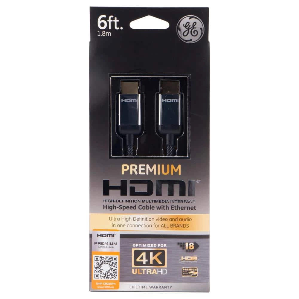 HDMI 2.0 – Invest in superior signal quality with a GE-branded UltraPro Premium Certified High-Speed HDMI Cable. Its increased HDR capability supports up to 60 frames per second, delivering a bright, clear picture with richer, more vibrant colors designed to enhance streaming, real-time gaming, 3D movies, virtual reality and more. With built-in Ethernet and the ability to transfer data at 18 Gbps, this HDMI cable is ready for the future. This high-performance cable features maximum shielding to minimize electromagnetic interference, as well as boost data transfer. The durable structure is resistant to stiffening and damage, with extra copper plating surrounding the connectors for a secure connection. The braided 6 ft. cable provides versatile setup options for your space, while the plug-and-play installation is effortless. Easily connect Blu-ray and DVD players, streaming devices, gaming consoles and more to your TV or electronic display. Built-in Ethernet supports internet-ready equipment without needing additional cables or a Wi-Fi connection. Upgrade your home entertainment system with a GE-branded UltraPro Premium Certified High-Speed HDMI Cable. Streaming Devices: Roku, Fire TV, Apple TV, more. Videogame Consoles: PlayStation (PS5, PS4, PS3), Xbox (Xbox Series X, Xbox Series S, Xbox 1, Xbox 360), Nintendo Switch, more.