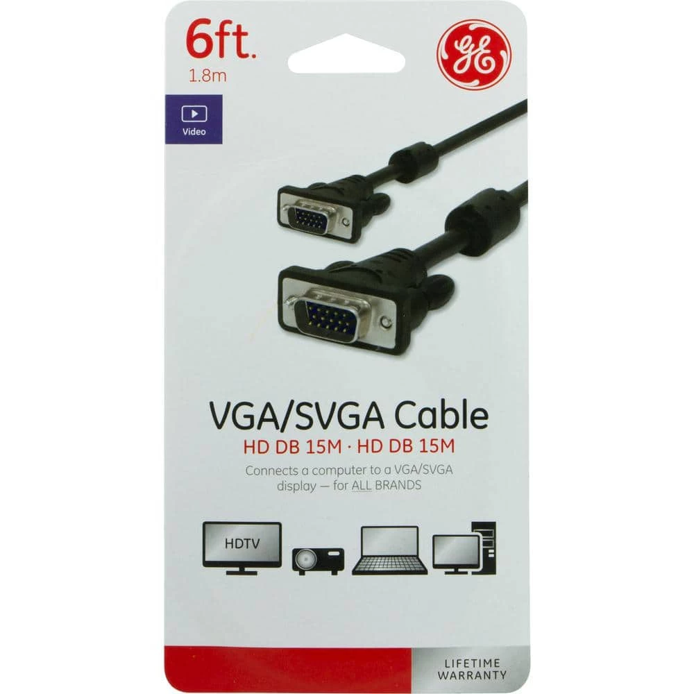 Connect your video component to any VGA/SVGA display port with this GE VGA/SVGA Cable Adapter. Easily stream high-quality presentations or screen-share from your computer onto your TV or projector. The 6 ft. cord allows for long-distance connections without sacrificing visual quality. This product comes with limited-lifetime warranty.