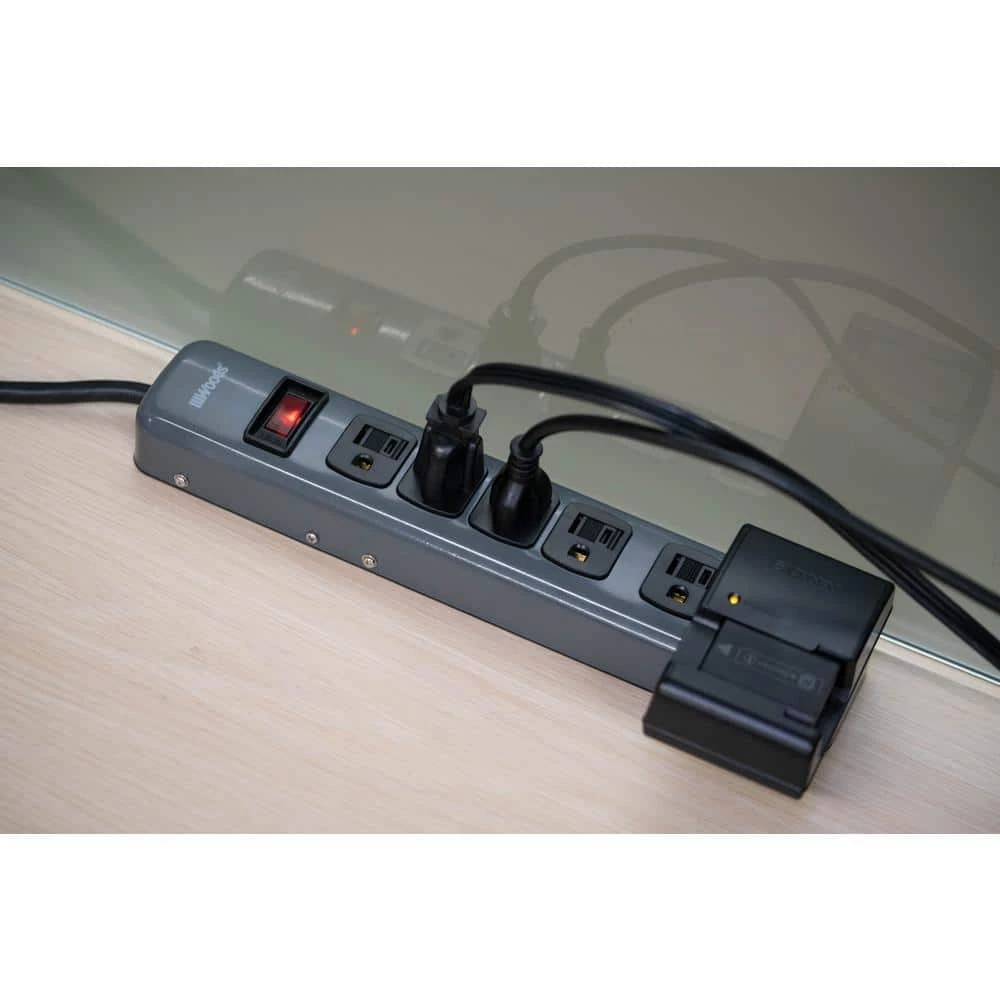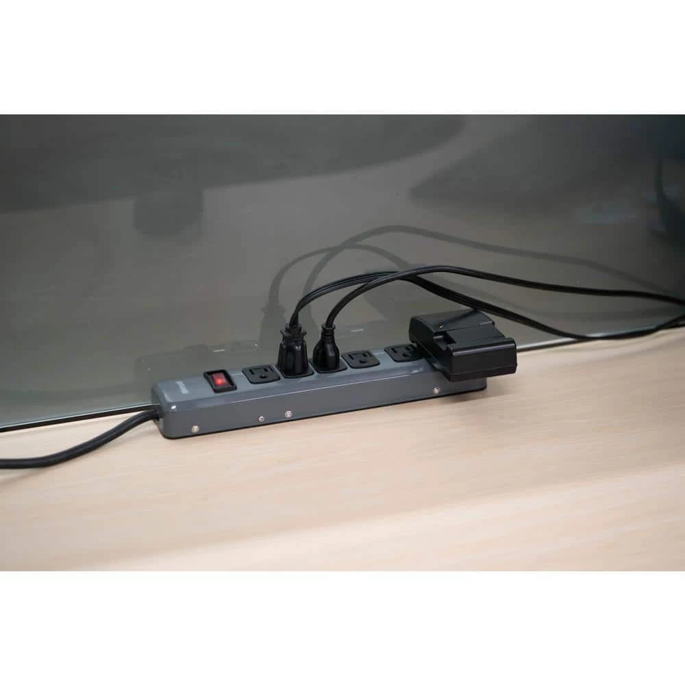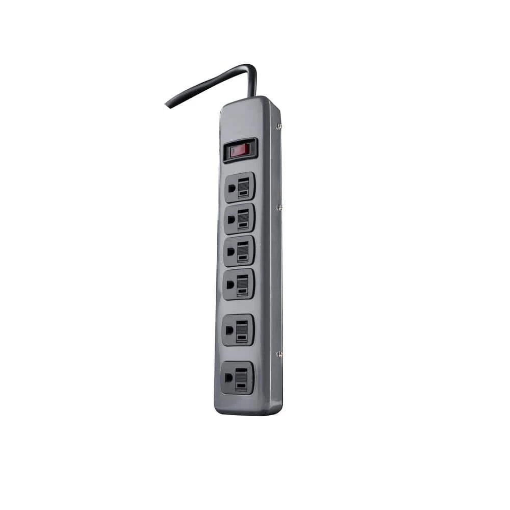 Woods 6 -Outlet Metal Power Strip features 2 adpater spaced -Outlets and safety covers. This metal power strip is extremely durable. Featuring a circuit breaker switch that automatically limits current flowing through your devices and protects them from damage if theres a sudden voltage spike, this power strip made of metal is an affordable way to protect your expensive electrical devices.