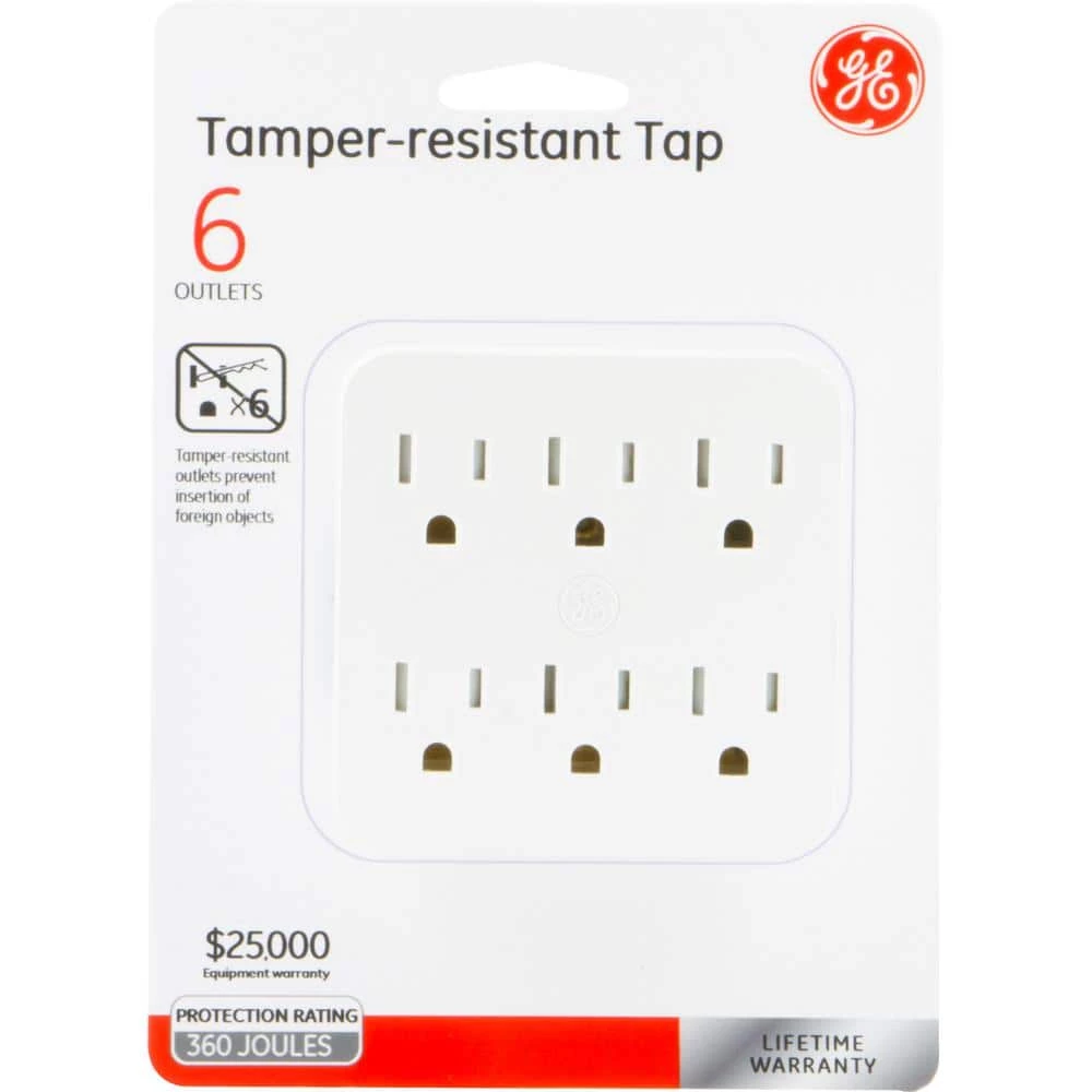 - Space saving this outlet expander uses only one outlet on a 2-outlet receptacle, so you can continue use of the other outlet while using this GE 6-outlet surge protector wall tap