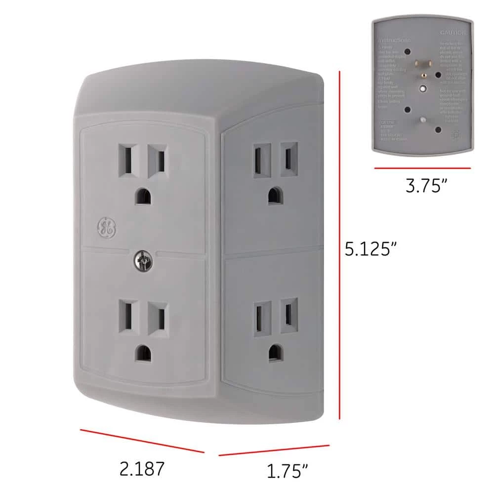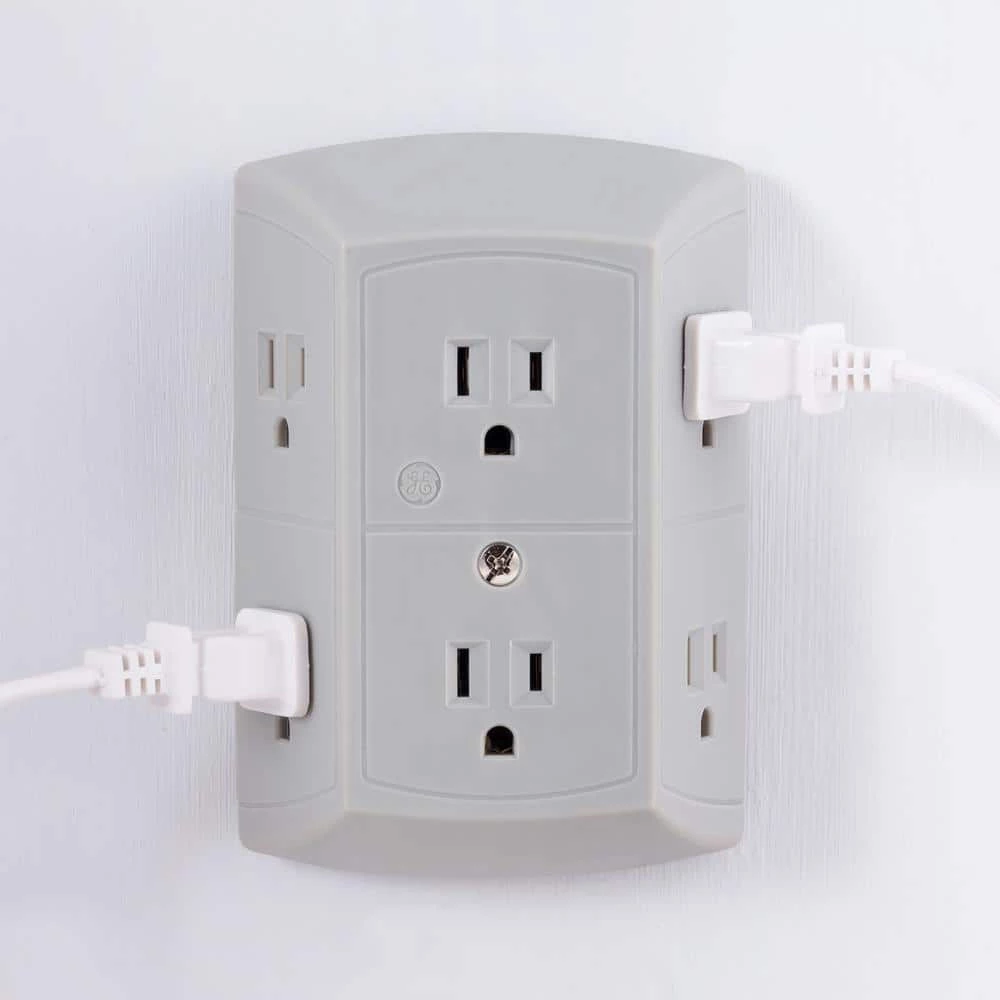 - Space-saving design this gray outlet tap has 3 standard outlets and 3 extra-wide spaced outlets to fit your bulky cell phone chargers or power adapters