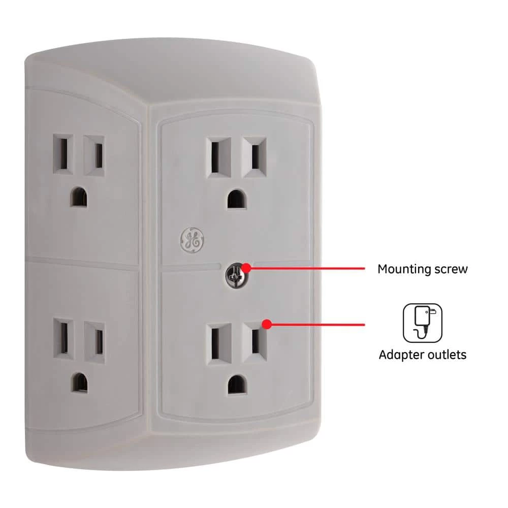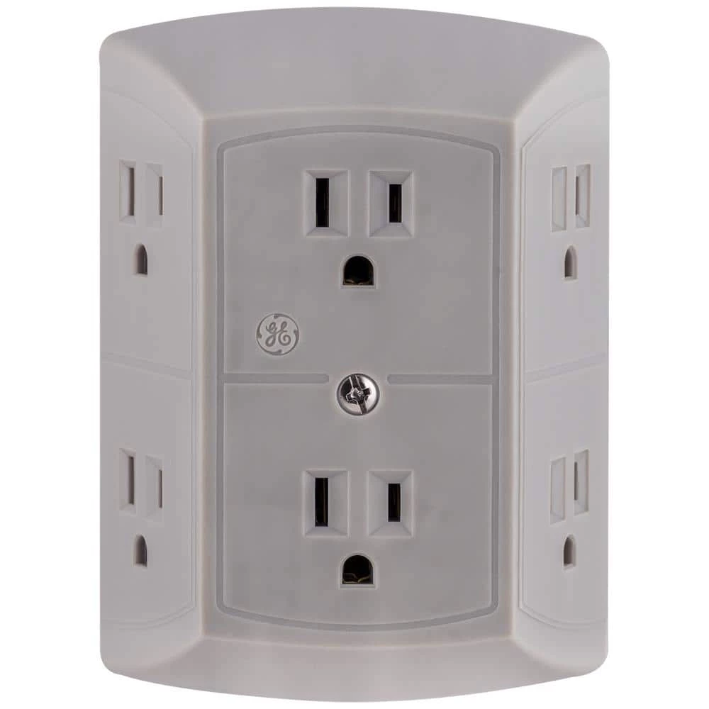 Expand your existing outlets capacity with a set of 2 GE-branded 6-Outlet Grounded Taps. Featuring six outlets, this plug-in tap transforms your regular outlet into a multi-use power source. The tap is ideal in home or office setups and the perfect addition to seasonal lighting. For even more convenience, the tap can be simply plugged into a duplex outlet for temporary use or secured with a mounting screw for permanent placement. When your power supply comes up short, the GE-branded 6-Outlet Grounded Tap is the solution.