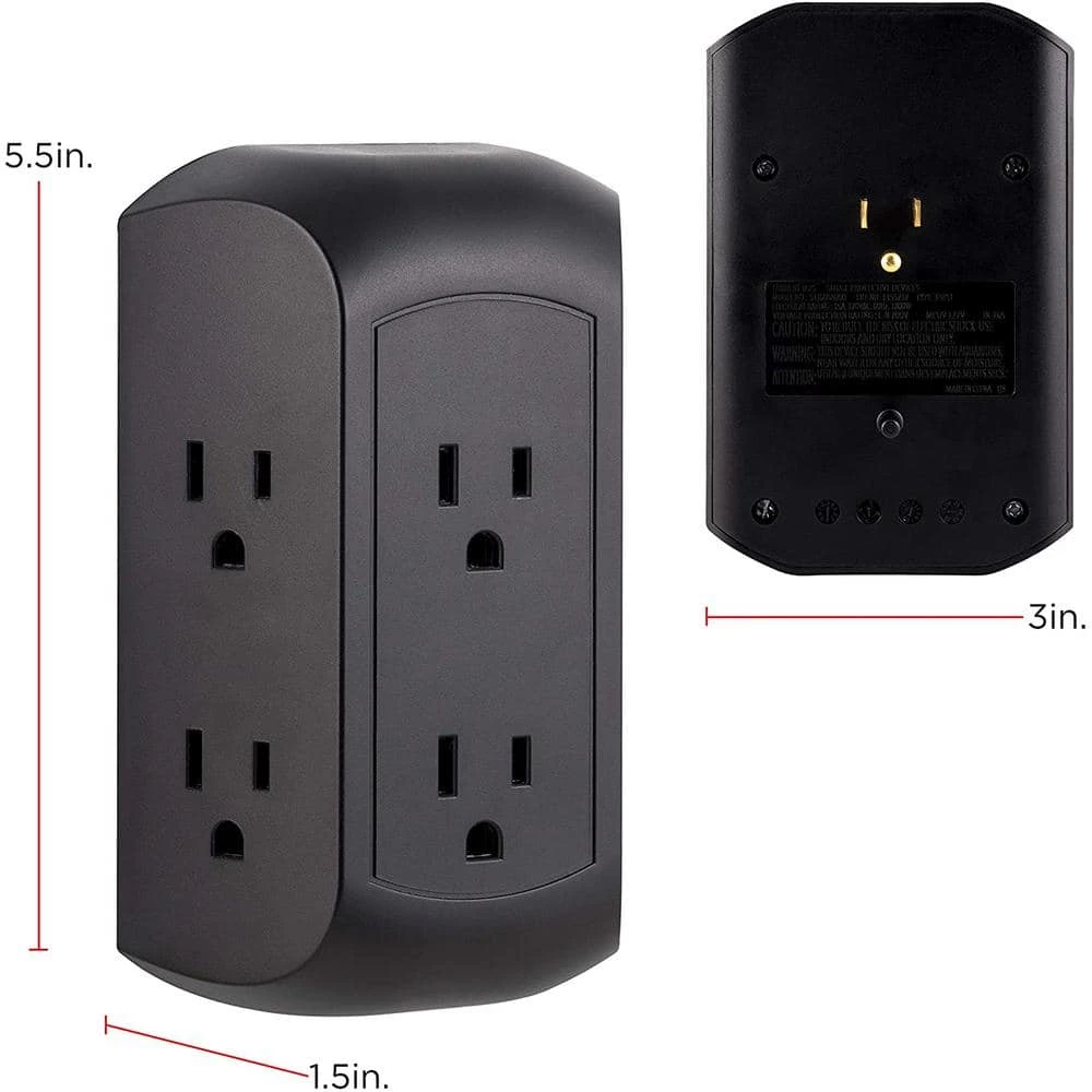 - Spaces saving design- this black outlet tap has 6 extra-wide spaced outlets to fit your bulky cell phone chargers or power adapters