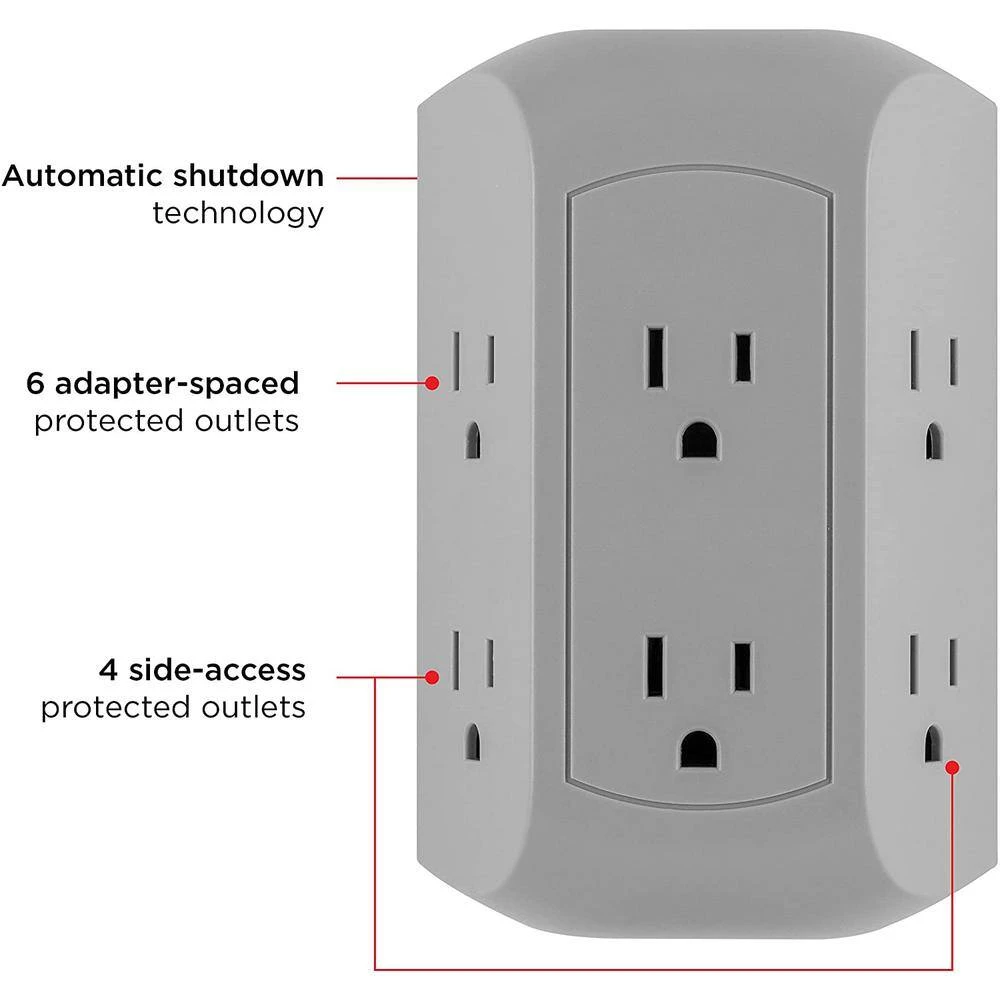 - Space-saving design- this gray outlet tap has 6 extra-wide spaced outlets to fit your bulky cell phone chargers or power adapters