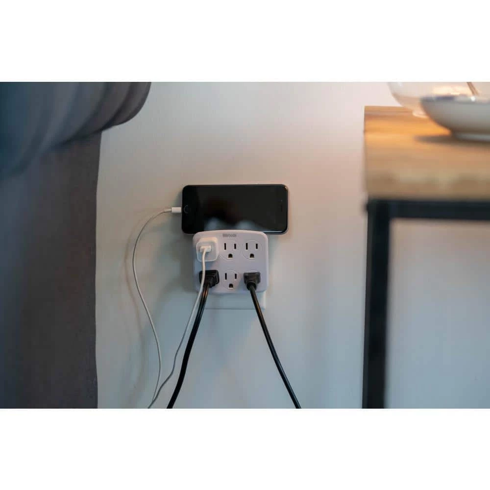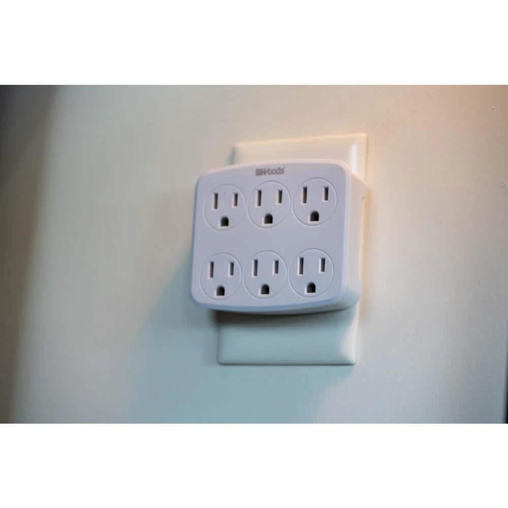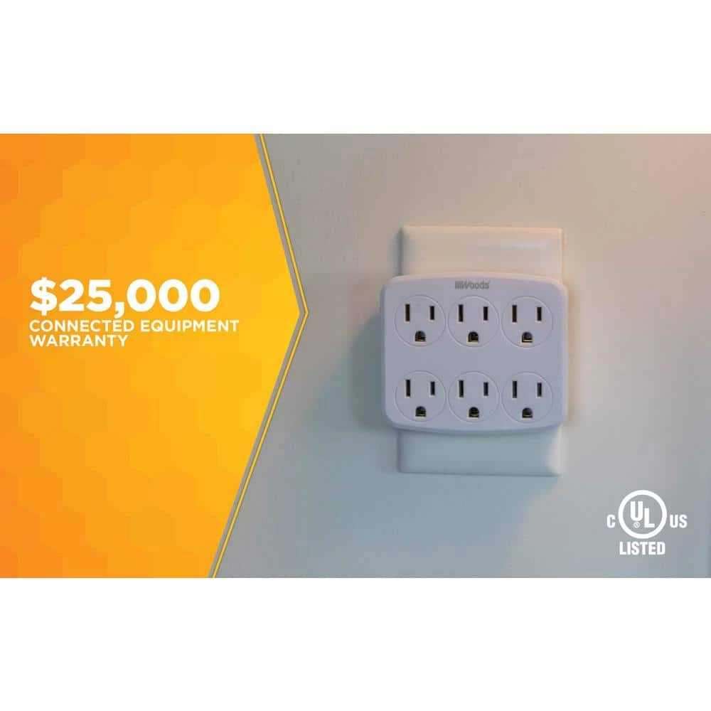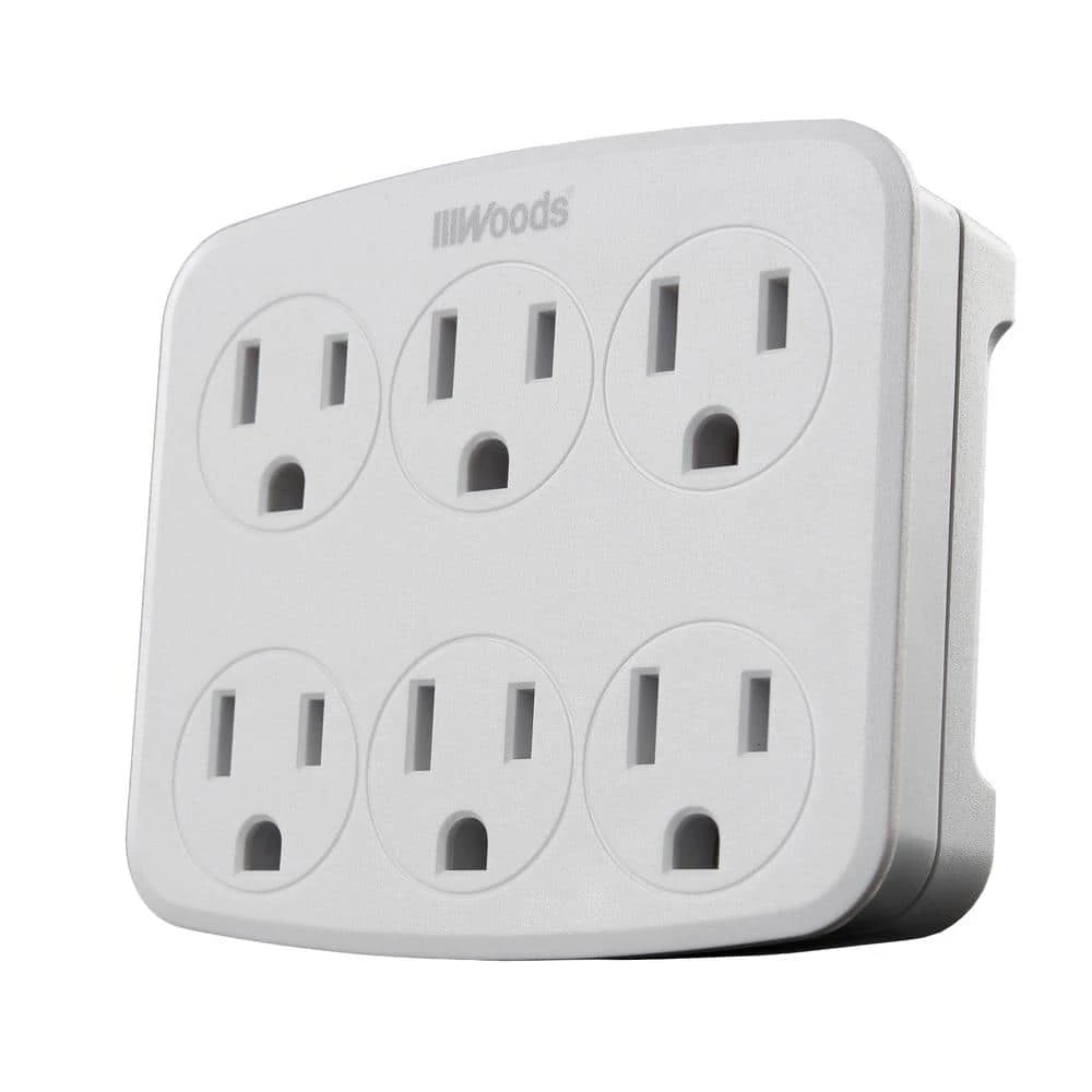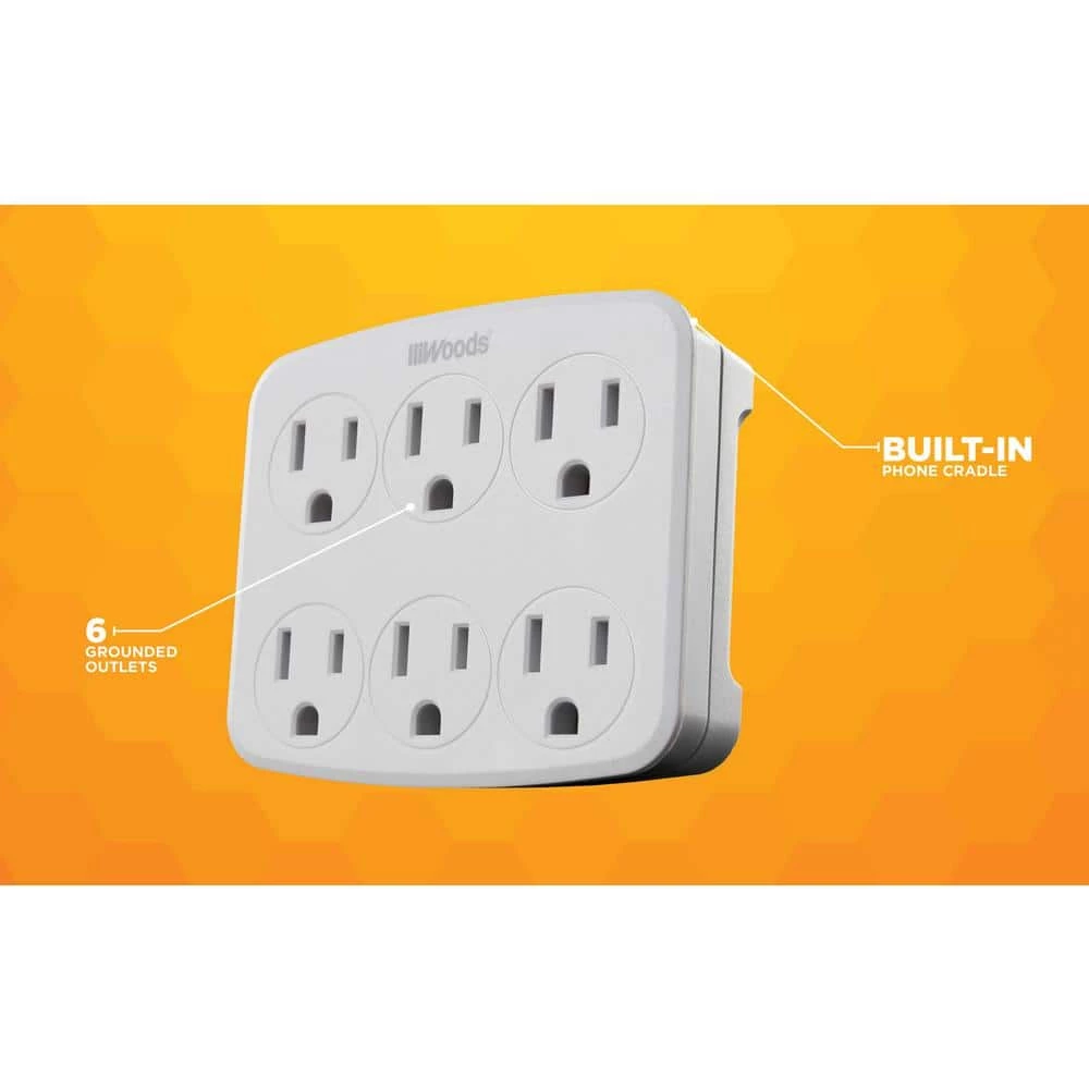 Woods 6-Outlet Wall Adapter expand your electrical options while adding user-friendly features like phone cradle, wire wrap and EZ-Pull. You can conveniently place your phone on the-Outlet and neatly wrap the cord for a clutter-free-Outlet. Perfect for your home, office, or any living space.