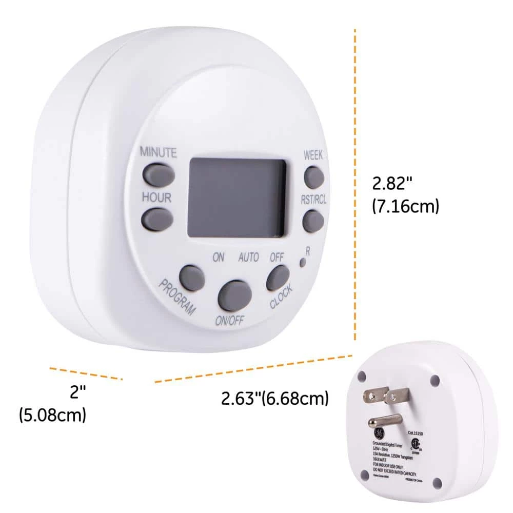 Save energy, save money and feel secure. The GE Plug-In 7-Day Digital Timer delivers convenient automation for lamps, seasonal lighting, portable fans, featuring a seven-day programmable schedule and a convenient override switch gives you ultimate freedom by providing a seamless transition between programmed settings and manual use. Automating your lights has never been so easy. The GE In-Wall 7-Day Digital Timer product is CFL ready, No wiring is required for installation. This product is UL listed and is backed by a one-year limited warranty.