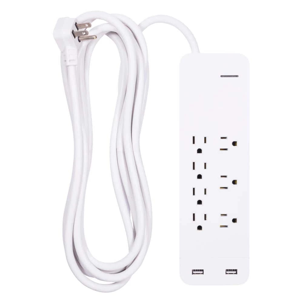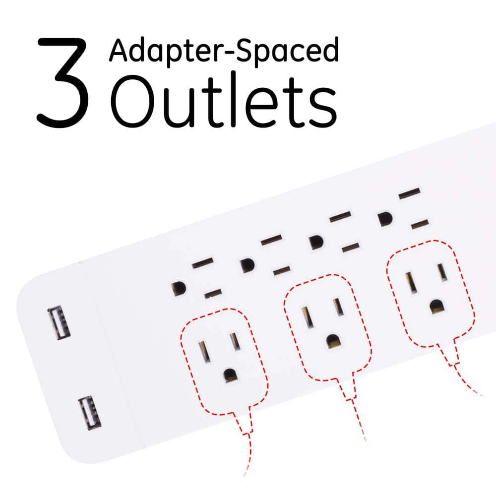 Protect your electronics and charge your portable devices at the same time with the GE Ultra Pro surge protector, 7-outlets + 2 USB charging ports. The premium surge protector Features 7 protected-outlets with 3 spaced for adapters, 2 USB charging ports, and a 15 ft. power cord. You can rapidly charge your mobile devices while other electronics are connected because of the powerful 2.4 Amp USB ports. The surge protector has a protected indicator light which shows the protection components are working. It also houses an integrated circuit breaker for overload protection. In the event the protection capacity is exceed by a power surge, the indicator light will not be lit and the power will be permanently shut down to the-outlets, ensuring the protection of your electronics. For those electronics, such as TVs and stereo equipment, the surge protector Features a power filter which reduces interference to provide a cleaner sound and picture experience.