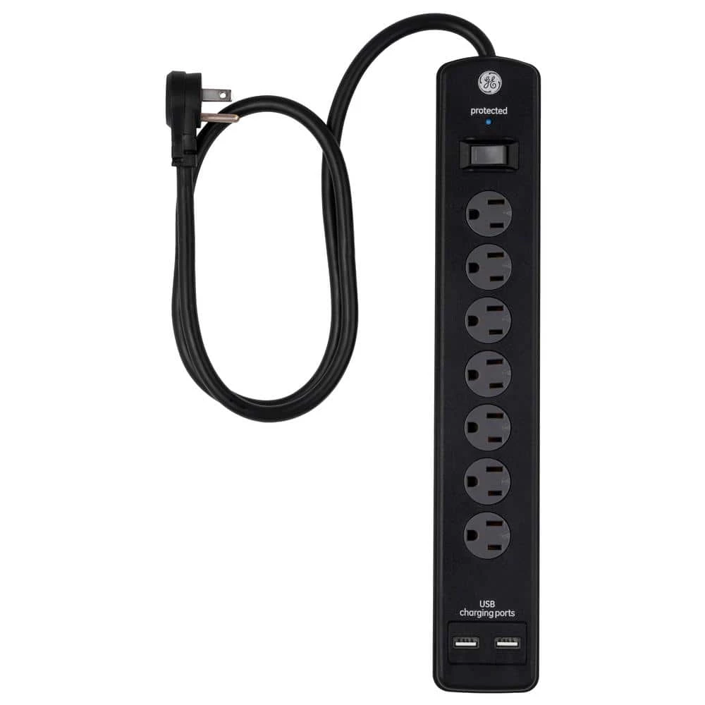 7 protected outlets, 2 USB ports, 3 ft. extension cord