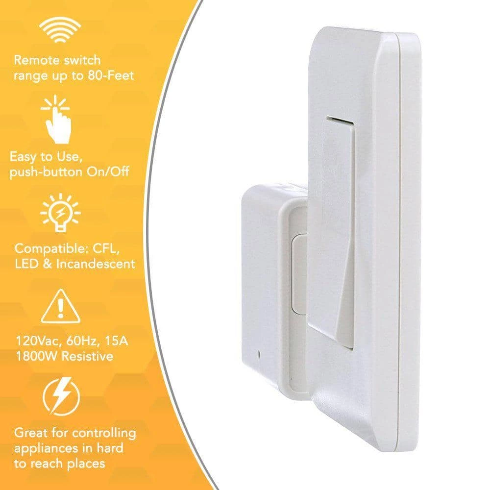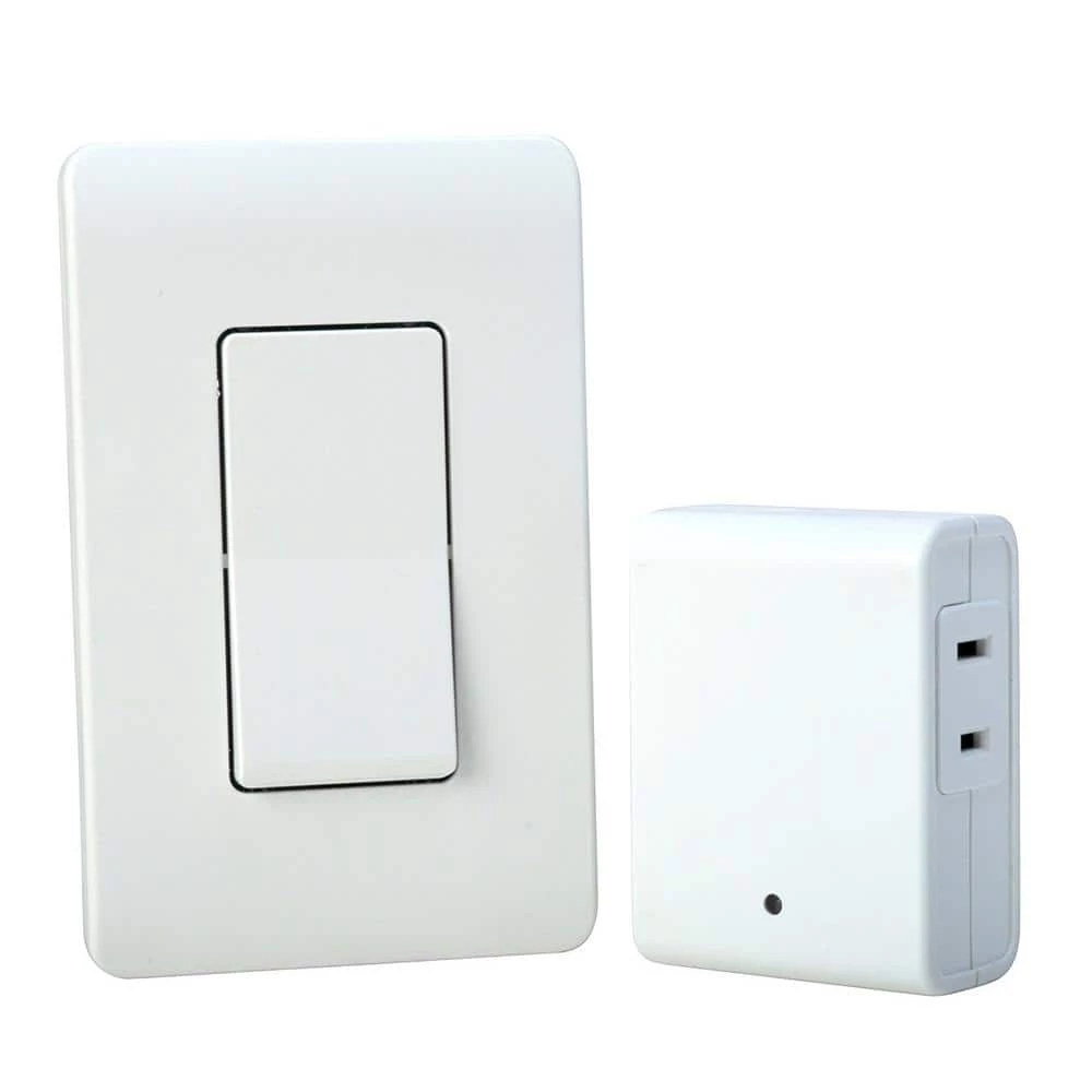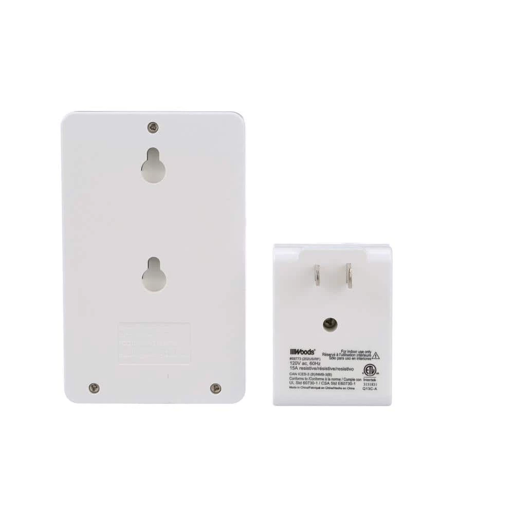 The Woods 59773 indoor wireless wall switch remote turns plugged in device on and off from up to 80 ft. away. To maximize range use with a clear line of sight. Operate home appliances from across the room. Turn on a table lamp before you enter a dark room, turn off the holiday lights at the doorway and operate fans and so much more. The easy to use transmitter is ideal for anyone who just wants a one-touch, convenient way to turn lighting or appliances on and off. The Woods 59773 wireless remote with wall switch offers a fast, tool-free set-up and is easy to operate by the simple touch of a button. The Woods brand of timers and home controls bring simplicity to your life, by maximizing convenience, security and energy savings.