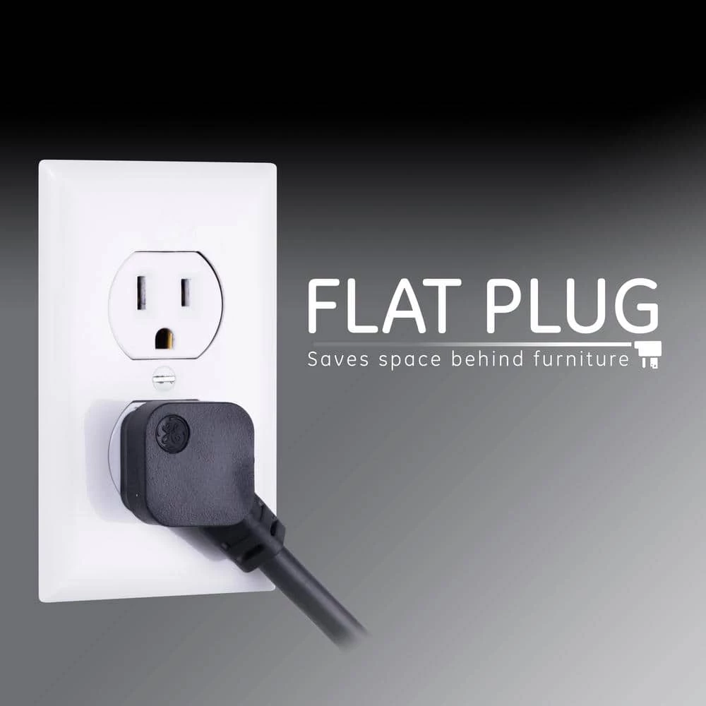 - Versatile Cord: Extra-long 8ft. power cord comprised of heavy-duty cable housed in a durable PVC insulation and jacket is strong enough to last a lifetime and pliable enough to easily fully extend. The space-saving design of the flat plug is engineered to allow the power cord to sit close to the wall.