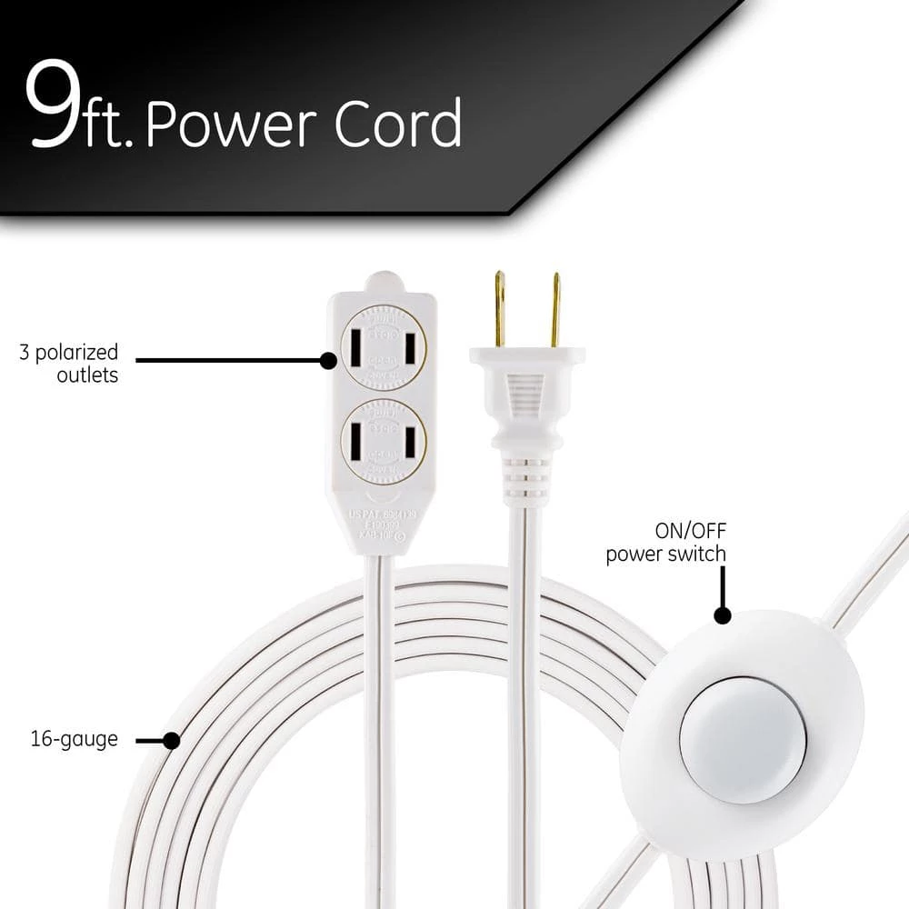 The GE 9 ft. Extension Cord with ON/OFF Switch allows you to operate multiple lamps and lighting sources from one, convenient switch. The 9 ft. cord gives you extra reach for your lighting and is perfect for home or office. Use during the holidays, plug all your indoor holiday and Christmas lights into the switch to turn on and off in one place. The extension cord is equipped with three polarized outlets, making it perfect for added convenience and flexibility for your charging needs. The GE 9 ft. Extension Cord with ON/OFF Switch is UL Listed.
