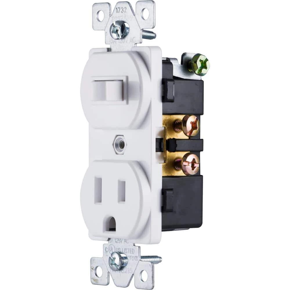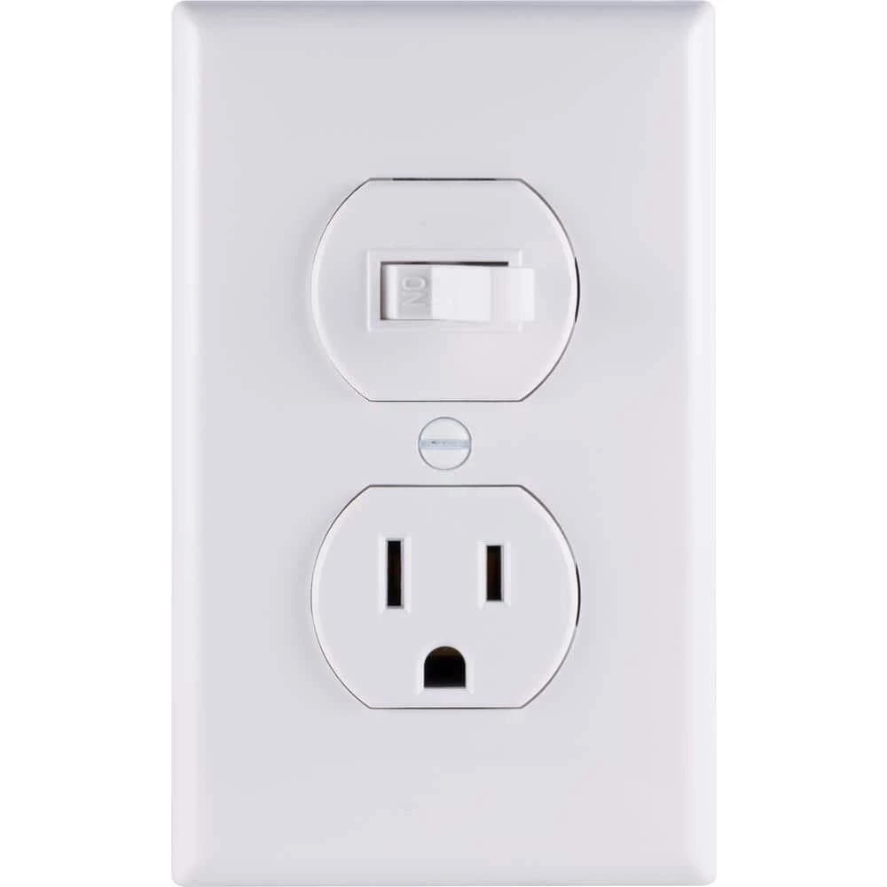 Enhance your home’s lighting controls with the GE-branded Wall Switch Outlet. The unique in-wall unit features a grounded outlet operated by a built-in switch. It fits conveniently a standard duplex wallplate (not included) and provides a simple solution to regulating power to devices without ON/OFF switches. Rated up to 15A, the single-pole wall switch supports general household uses without concern about overload. In addition to providing a reliable, easily controlled power source, the white finish easily integrates with your home’s existing outlets. Take control of your electrical system with the GE-branded Wall Switch Outlet.
