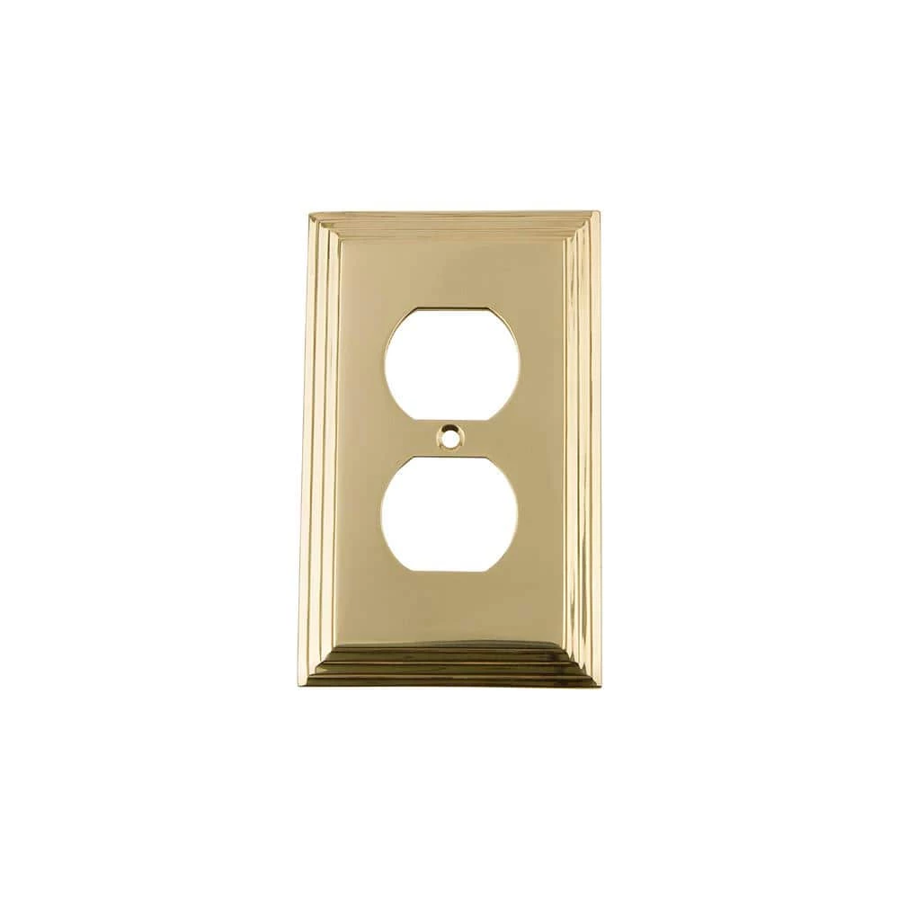Since the 1920s, this streamlined, switch plate design has been a favorite for showcasing the beautiful charm of the jazz era. This collection looks great in any deco or mid-century modern home. Adding to the vintage look of your home, our Unlacquered Brass finish is polished and unlacquered, allowing you the option to polish it for a shinier look, or let it gather a rich patina. Available in a variety of configuration options including: 1 Toggle, 2 Toggle, 3 Toggle, 1 Duplex (Socket), Double Duplex (Socket), 1 Toggle / 1 Duplex (Scoket), 1 Duplex (Socket) / 1 Rocker, 1 Rocker, 2 Rocker, 3 Rocker, 1 Toggle / 1 Rocker and Blank.