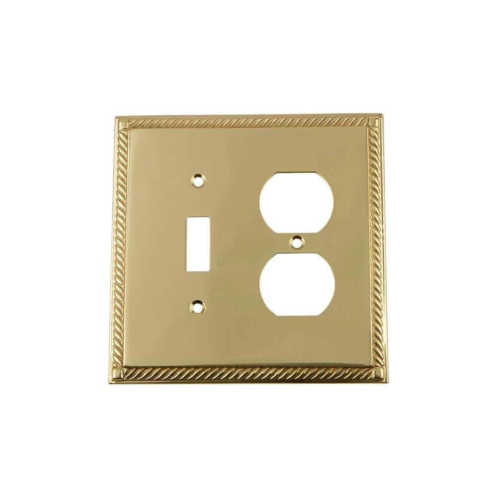 Capturing a refined, sculpted look, our Rope Rosette switch plates offer rich detail along the border without creating a busy look. This style has been around for centuries and perfectly complements any traditional or rustic home. Adding to the vintage look of your home, our Unlacquered Brass finish is polished and unlacquered, allowing you the option to polish it for a shinier look, or let it gather a rich patina. Available in a variety of configuration options including: 1 Toggle, 2 Toggle, 3 Toggle, 1 Duplex (Socket), Double Duplex (Socket), 1 Toggle / 1 Duplex (Scoket), 1 Duplex (Socket) / 1 Rocker, 1 Rocker, 2 Rocker, 3 Rocker, 1 Toggle / 1 Rocker and Blank.