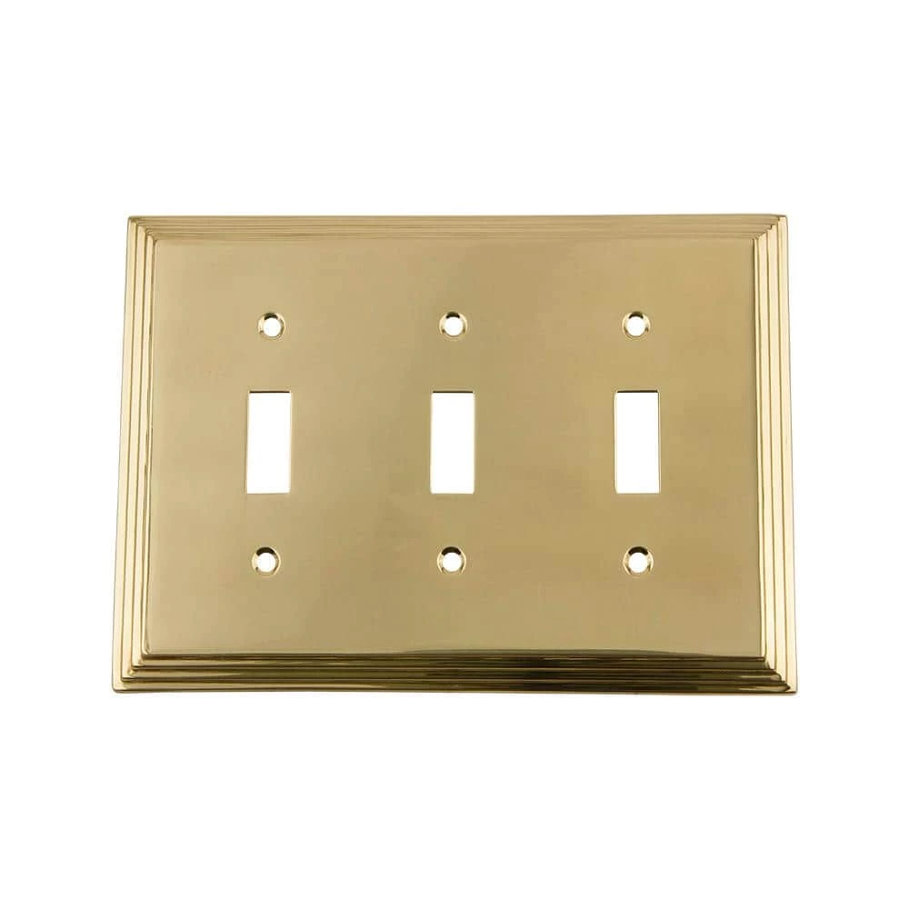Since the 1920s, this streamlined, switch plate design has been a favorite for showcasing the beautiful charm of the jazz era. This collection looks great in any deco or mid-century modern home. For a supremely, traditional finish, our Polished Brass is a perfect fit. This finish can highlight the most intricate details within your switch plates. It may go in and out of style frequently, but it is never gone for long. Available in a variety of configuration options including: 1 Toggle, 2 Toggle, 3 Toggle, 1 Duplex (Socket), Double Duplex (Socket), 1 Toggle / 1 Duplex (Scoket), 1 Duplex (Socket) / 1 Rocker, 1 Rocker, 2 Rocker, 3 Rocker, 1 Toggle / 1 Rocker and Blank.