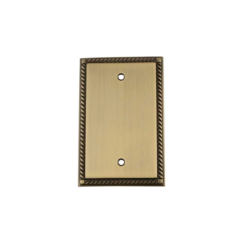 Capturing a refined, sculpted look, our Rope Rosette switch plates offer rich detail along the border without creating a busy look. This style has been around for centuries and perfectly complements any traditional or rustic home. With an Antique Brass finish you can add a beautiful, yet soft look to your switch plates. This finish is polished and hand-relieved, highlighting the brass material, which is secured with our satin lacquer. Available in a variety of configuration options including: 1 Toggle, 2 Toggle, 3 Toggle, 1 Duplex (Socket), Double Duplex (Socket), 1 Toggle / 1 Duplex (Socket), 1 Duplex (Socket) / 1 Rocker, 1 Rocker, 2 Rocker, 3 Rocker, 1 Toggle / 1 Rocker and Blank.