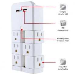 6-Outlet 2 USB Swivel Outlet Charging Station in White by GE