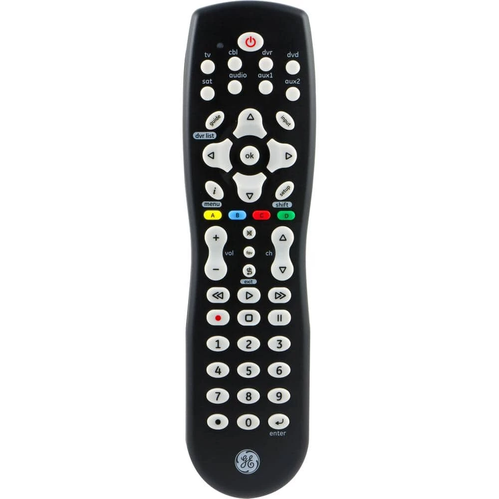 Settle in for the night with a GE 8-Device Universal Remote. You will no longer need to worry about keeping track of controllers for each device in your home entertainment system. The remote is designed to control up to eight separate devices, including your TV, Blu-ray/DVD player, cable, satellite, soundbar, streaming media players and more. Eliminate the hassle of programming more than one controller and enjoy the simple, user friendly setup of this universal remote. This remote is preprogrammed for immediate use with Samsung TVs and is compatible with all major brands. It includes a DVD/Blu-ray player open/close button, as well as advanced DVR functions, simple menu navigation and a dot button for sub-channel access. Master volume control allows you to adjust the audio regardless of which device you’re operating. And, for added convenience, the favorites button can store up to 10 channels for instant access. Make this GE 8-Device Universal Remote the center of your home entertainment system.