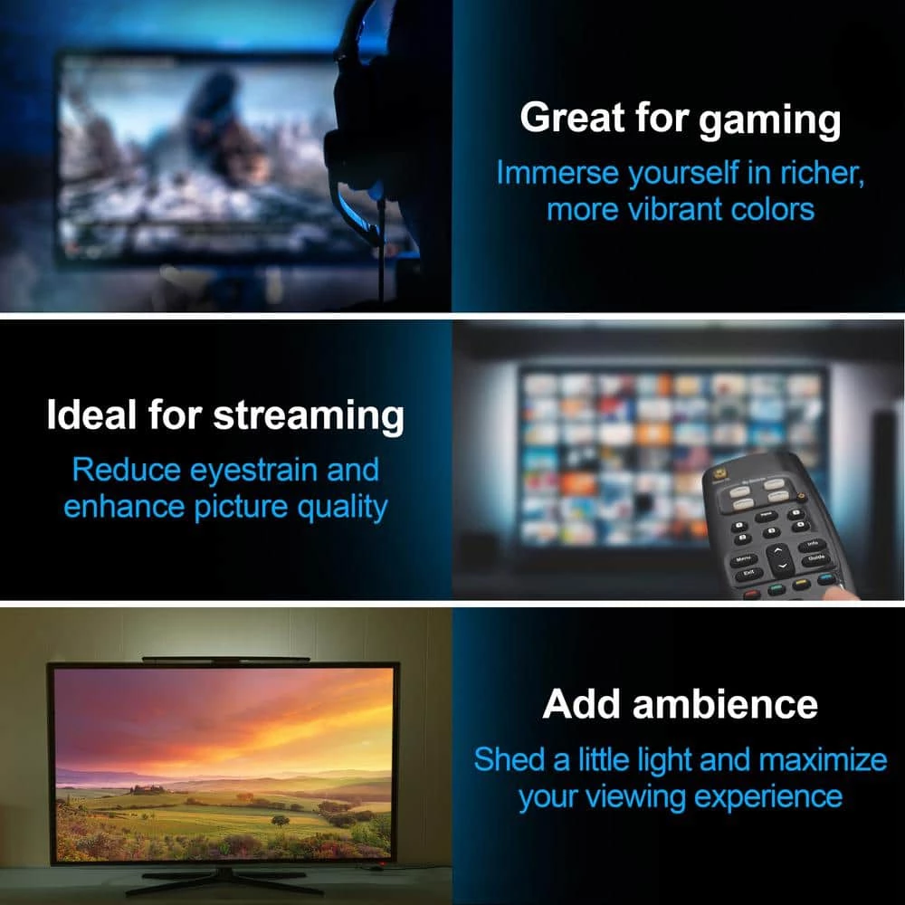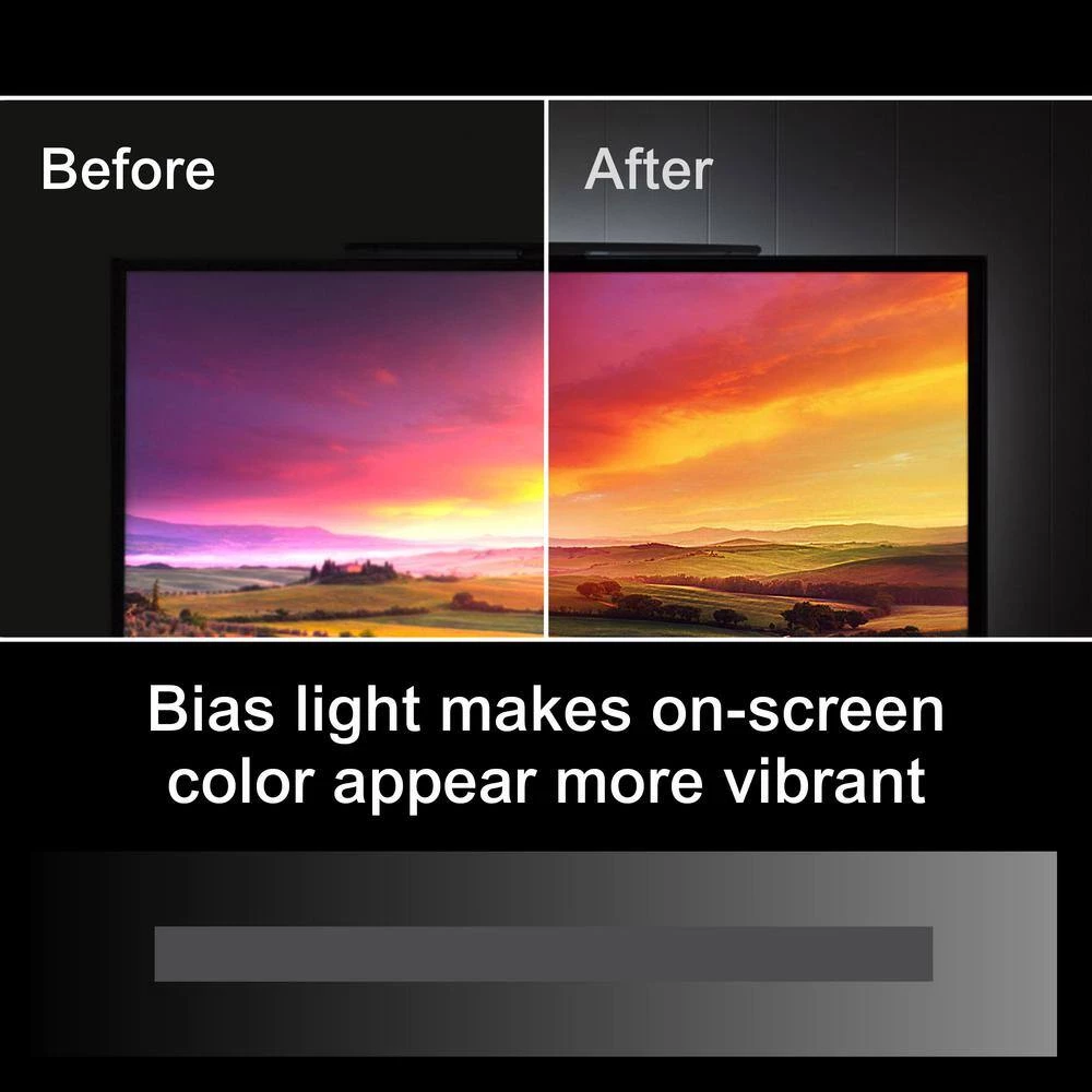 - Bias white backlight – this white light reflects off the wall behind your TV or monitor and is optimal for reducing eyestrain and enhancing picture quality by normalizing the overall lighting contrast in the room, lessening the strain on your eyes and making on-screen colors appear richer and more vibrant