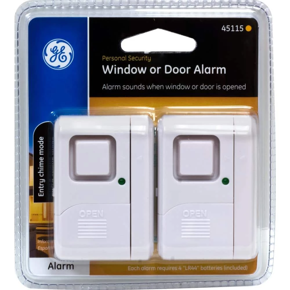 The GE Personal Security Window/Door Alarm provides a simple-to-use, cost-effective security solution to protect you and your family against home invasions thanks to the 120 dB alarms, loud enough to make a would-be intruder think twice about entering through your doors or windows. The alarm is also extremely easy to use. The window/door alarms feature a contemporary design with easy access buttons and controls for simple operation. This straightforward concept makes using the GE Personal Security Window/Door Alarm intuitive, no matter what your technological skills may be. The GE Personal Security Window/Door Alarm also includes two independent window/door alarms, each with a built-in 120 dB alarm for even greater home security. With no wires required for installation, protecting any window/door in your home is as easy as attaching the alarm to your window/door with double-sided tape (included). Each window alarm features an on/off/chime switch for easy operation and a low battery test button for checking battery life. Perfect for homes, apartments, dorm rooms and offices.